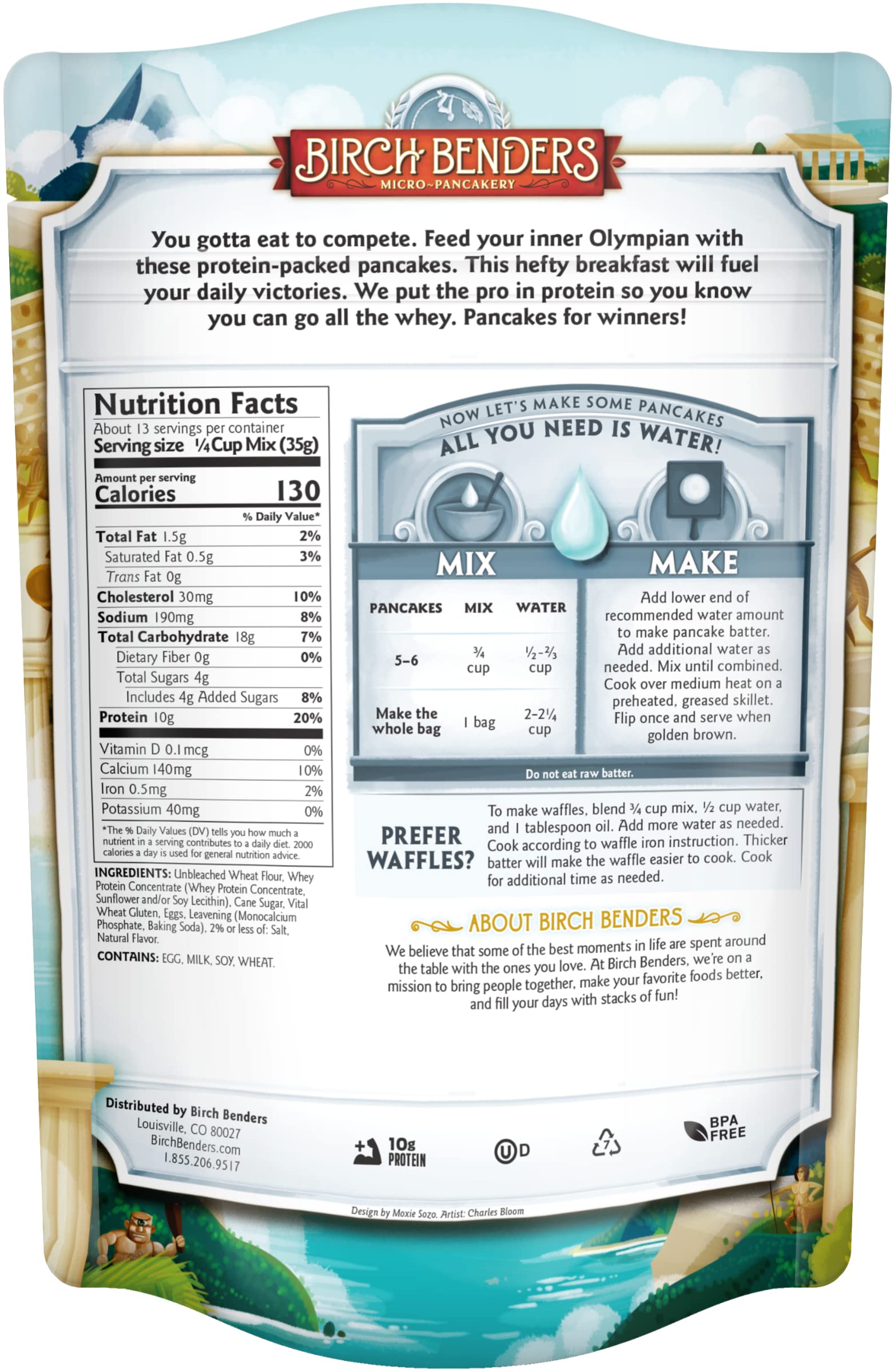 - Q: What are the main ingredients in Birch Benders Protein Pancake and Waffle Mix? A: Birch Benders Protein Pancake and Waffle Mix primarily contains high-quality whey protein, along with other ingredients that provide essential nutrients like calcium, fiber, and iron. This mix is designed to fuel your breakfast with a powerful protein boost.