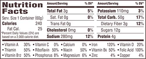 - Q: What is the size of each cereal cup and how many come in a pack? A: Each Honey Bunches of Oats cereal cup is 2 ounces, and they are available in a pack of twelve (12) cups, perfect for easy storage and convenient use.