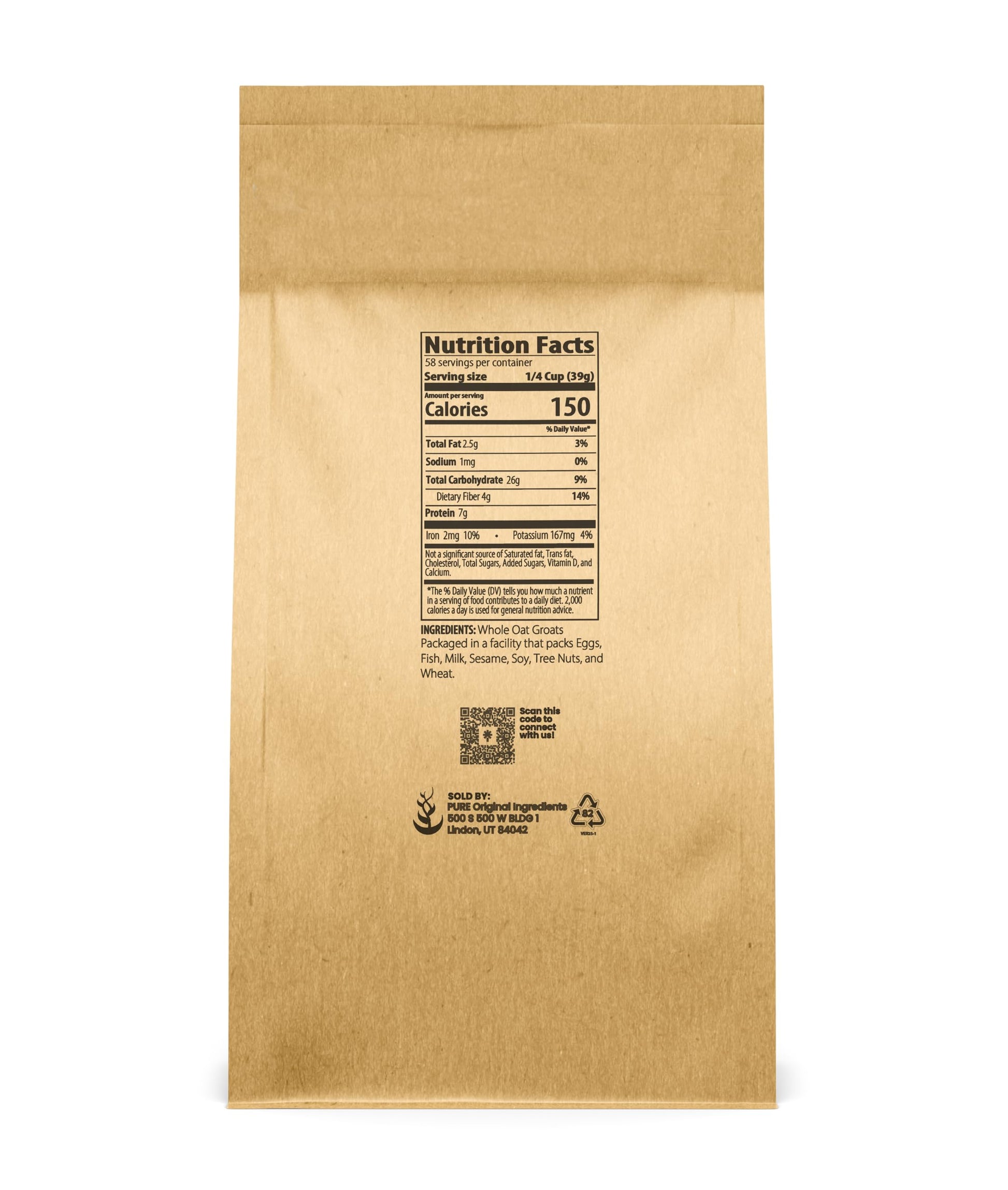 Q: Are Pure Original Ingredients oat groats non-GMO and vegan?A: Yes, Pure Original Ingredients oat groats are non-GMO and vegan, ensuring that you receive a product made from pure ingredients without any additives or animal products.