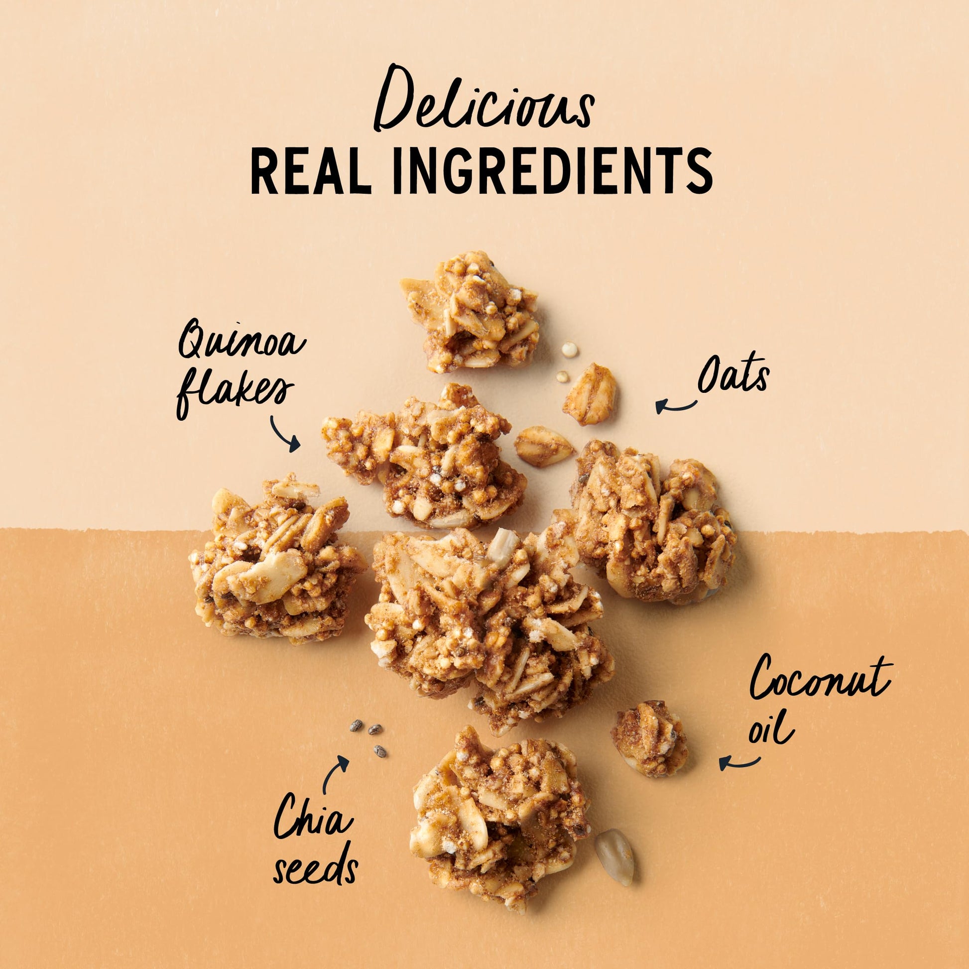 Q: What are the main ingredients in this granola?A: The main ingredients include organic honey, sliced almonds, gluten-free oats, chia seeds, and cinnamon, all combined to create a delicious and nutritious snack.