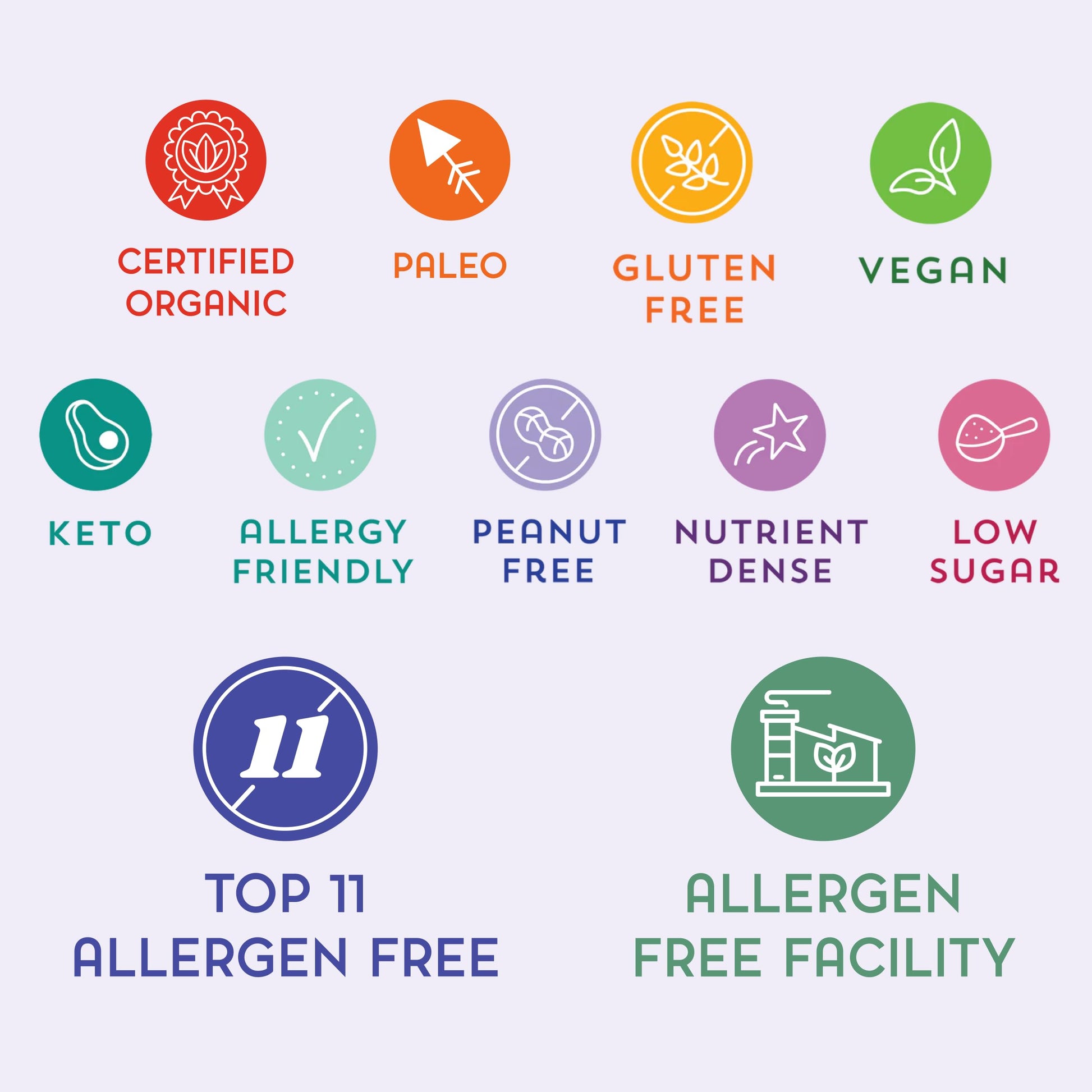 - Q: Is this granola free from common allergens? A: Yes, Rawcology Organic Crunch Granola is free from the top 11 allergens, including peanuts, tree nuts, gluten, and dairy. It is manufactured in a facility that maintains an allergen-free environment.
