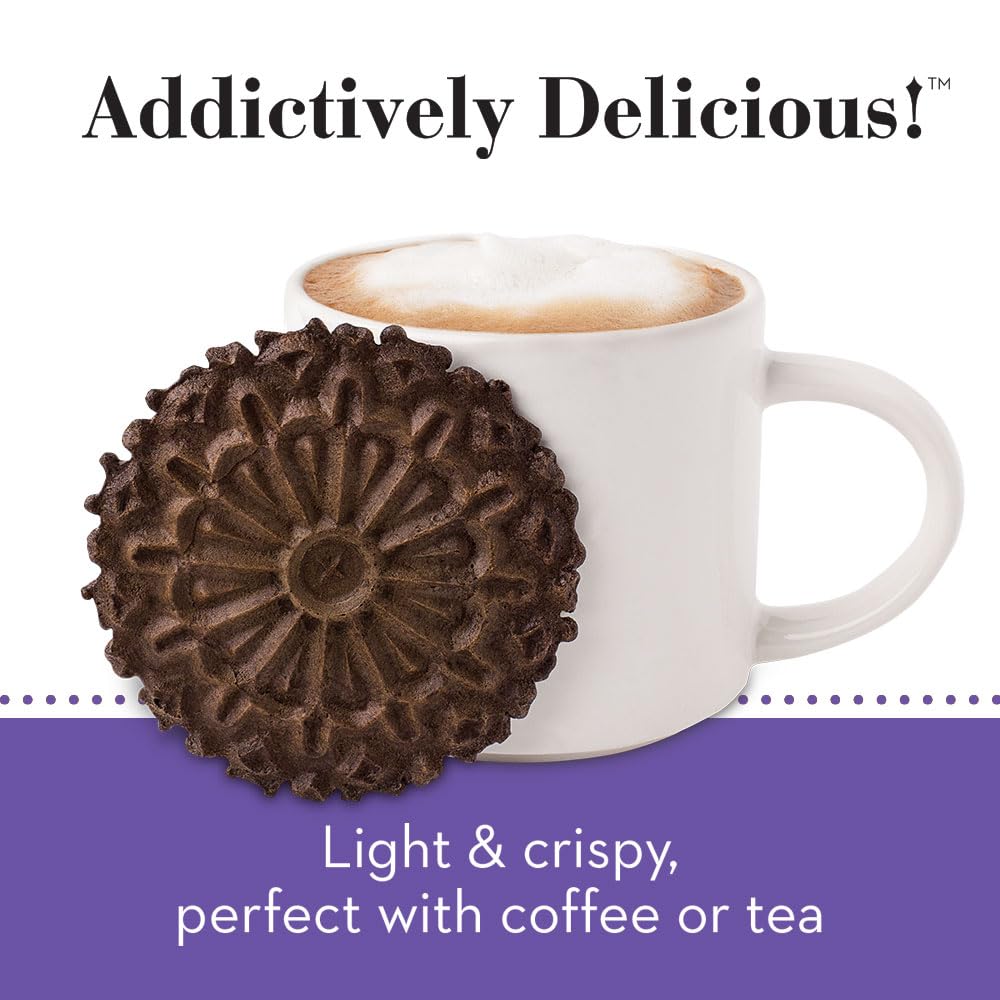 Key Features:- Chocolate Reko: Lightly sweetened with dark chocolate, these cookies capture the crispy texture and subtly sweet flavor of traditional pizzelle. Perfect as a low-calorie snack or a dessert accompaniment.