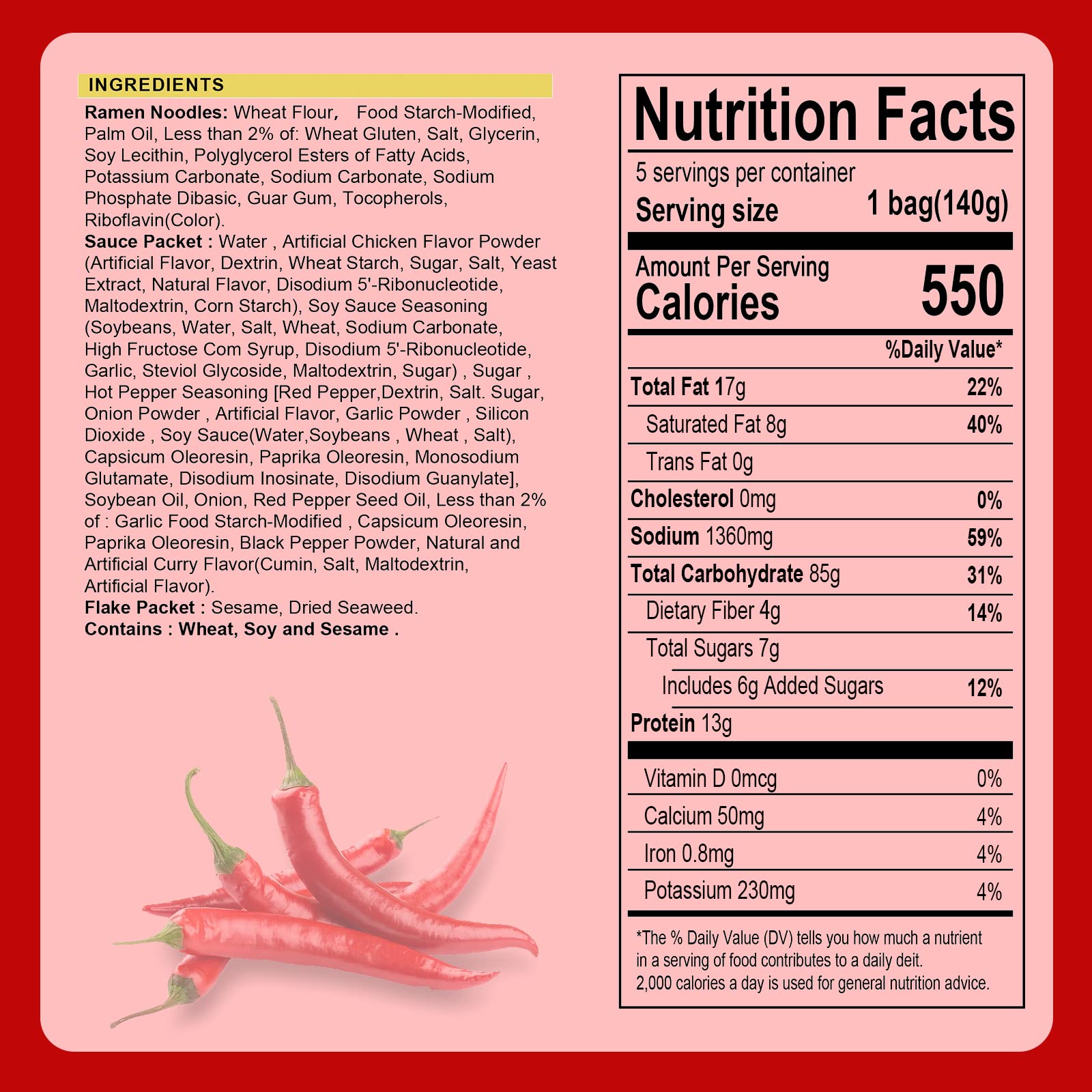 Q: What are the nutritional benefits of this ramen?A: This ramen contains 0g trans fat and 0mg cholesterol, making it a tasty option without compromising on nutritional values. It's made from carefully selected ingredients for a chewy noodle texture.