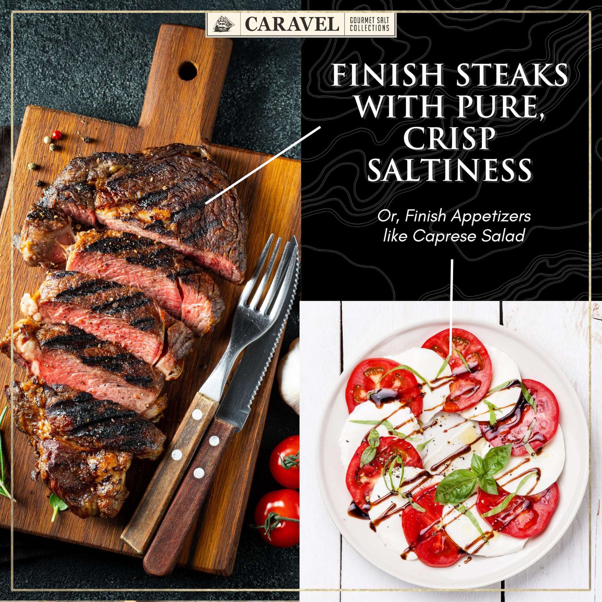 - Q: What is the size of the Caravel Gourmet Sea Salt Flakes jar? A: The Caravel Gourmet Sea Salt Flakes come in a convenient 3.5-ounce jar, making it easy to store and use in your kitchen.