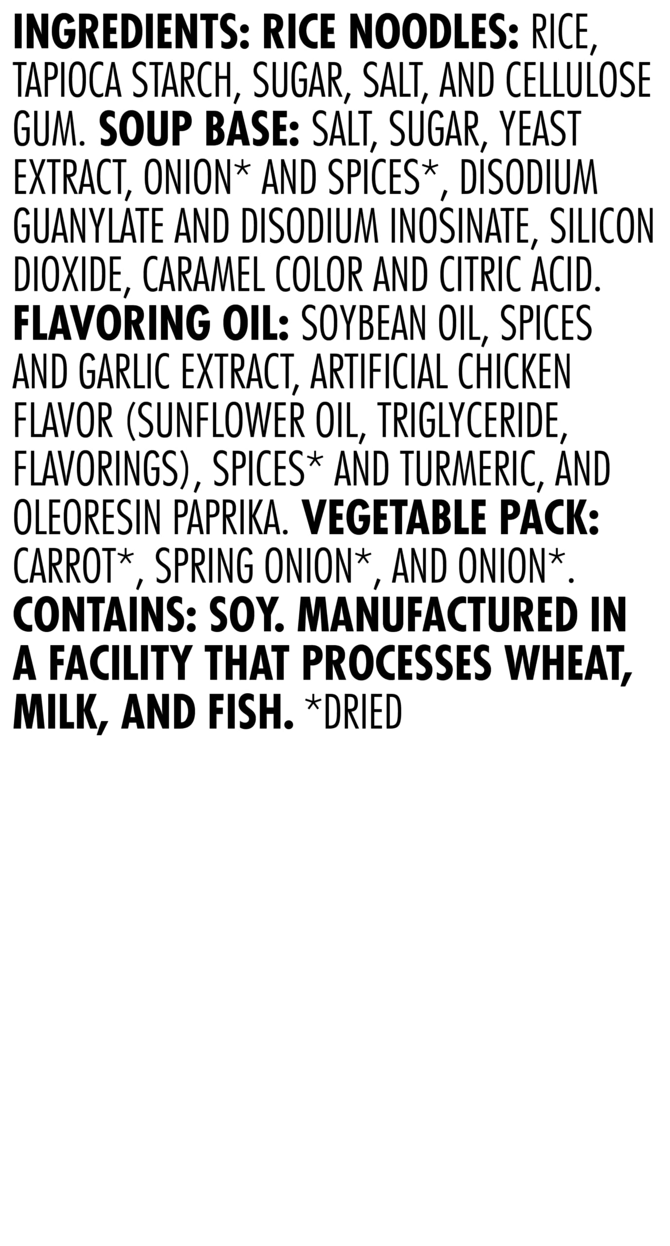 Q: What ingredients are included in the Snapdragon Chicken Pho packets?A: Each 2.1 oz packet contains authentic rice noodles, a rich chicken-flavored broth base, dried vegetables, and flavoring oil, ensuring a flavorful and satisfying meal.