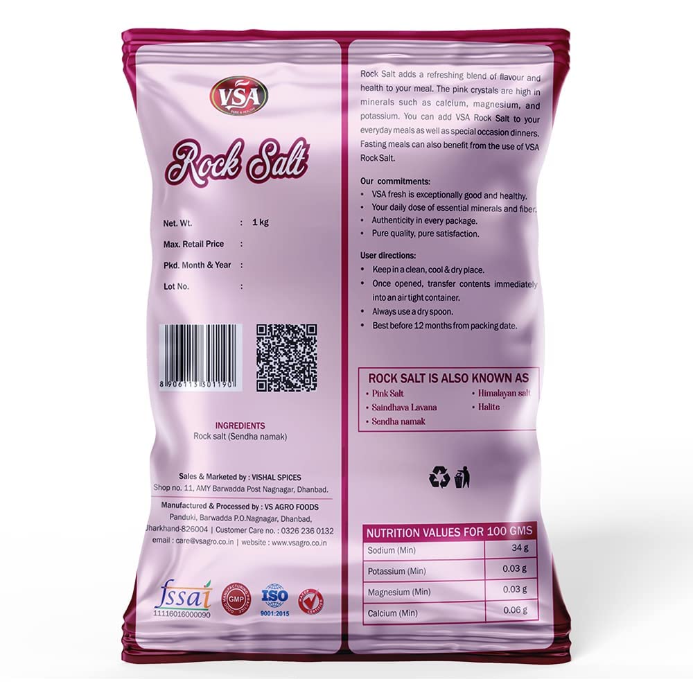 - Q: What is VSA Pink Salt and how is it different from regular table salt? A: VSA Pink Salt, also known as Sendha Salt or Himalayan Salt, is a natural rock salt that is unrefined and contains essential minerals. Unlike regular table salt, which is often processed and stripped of its minerals, VSA Pink Salt retains its natural trace elements, offering a unique flavor and health benefits.