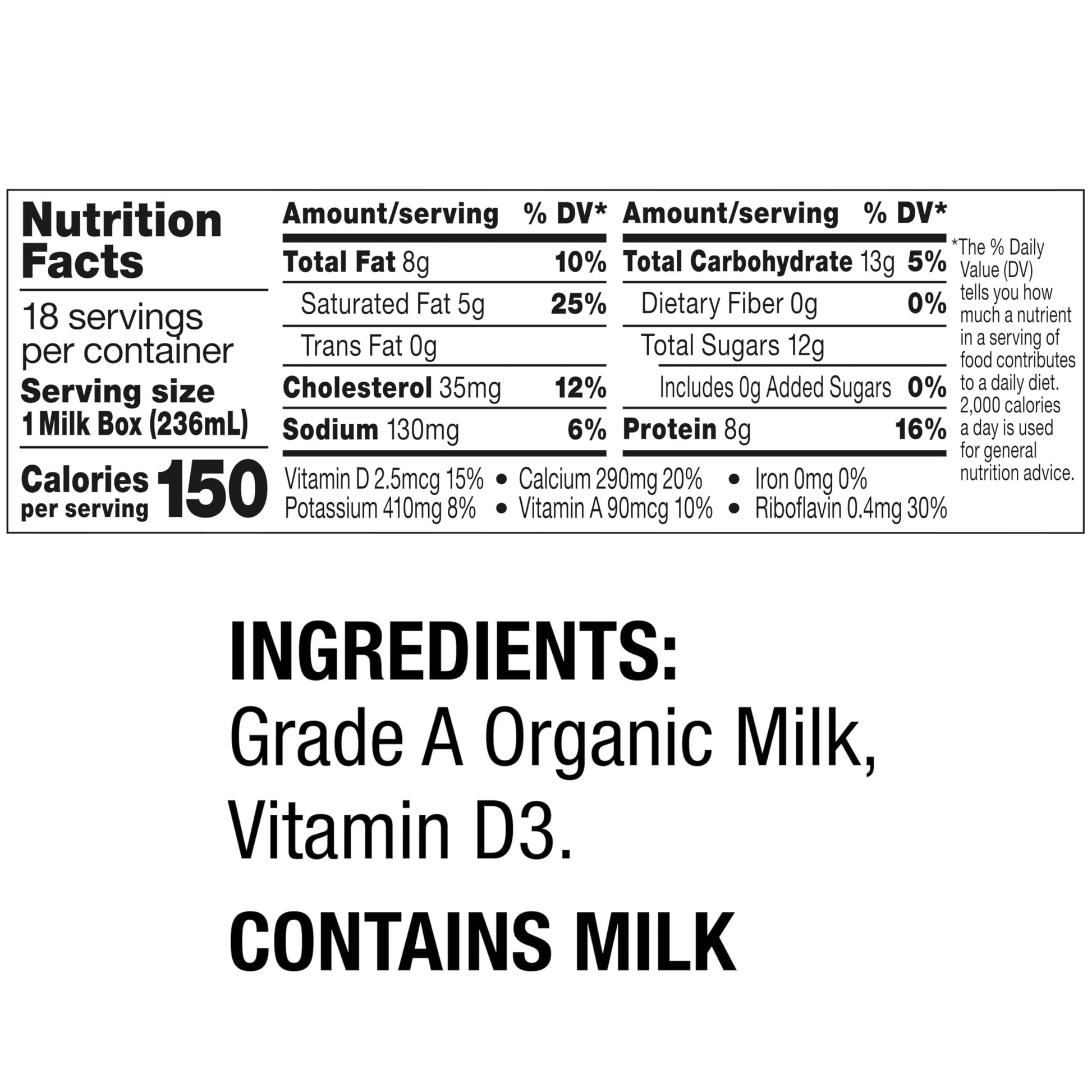 Product DescriptionTake the organic goodness of Horizon milk on-the-go with Horizon Organic Shelf Stable Whole Milk Boxes. With real Horizon Organic Milk from pasture-raised* cows, each whole milk box is an excellent source of calcium, a good source of vitamin D, and provides 8g protein.** These shelf stable milk boxes feature special packaging that locks in flavor with no refrigeration required. Great for kids lunchboxes, bento boxes, post-workout recovery, and on the go snacking, Horizon Organic boxed milk is a convenient grab-and-go option for adults and busy families on the move. Pack these single serve milk boxes for an alternative to juice boxes. Always USDA Certified Organic, the UHT milk in every Horizon milk box comes from cows cared for by trusted farmers, fed non-GMO feed, and not treated with antibiotics or growth hormones.*** Horizon Organic Shelf Stable Milk is available in more delicious flavors, including chocolate, vanilla and strawberry, and in whole, lowfat and DHA varieties. *Per National Organic Program Regulations. **See nutrition info for sat. fat content. ***No significant difference has been shown between milk from rBST-treated & non rBST-treated cows.From the ManufacturerTreat your family to the cold, creamy goodness of Horizon Organic Whole Milk Boxes. Rich, delicious taste isnt the only thing that makes this milk special: its also wonderfully wholesome and made to meet the highest USDA Organic standards. Each box of milk provides many nutrients, including vitamin A, vitamin D, and 8 grams of protein. And thanks to their special packaging, these shelf-stable milk boxes lock in delicious taste without refrigeration or preservatives. *No significant difference has been shown between milk from rBST-treated & non rBST-treated cows.