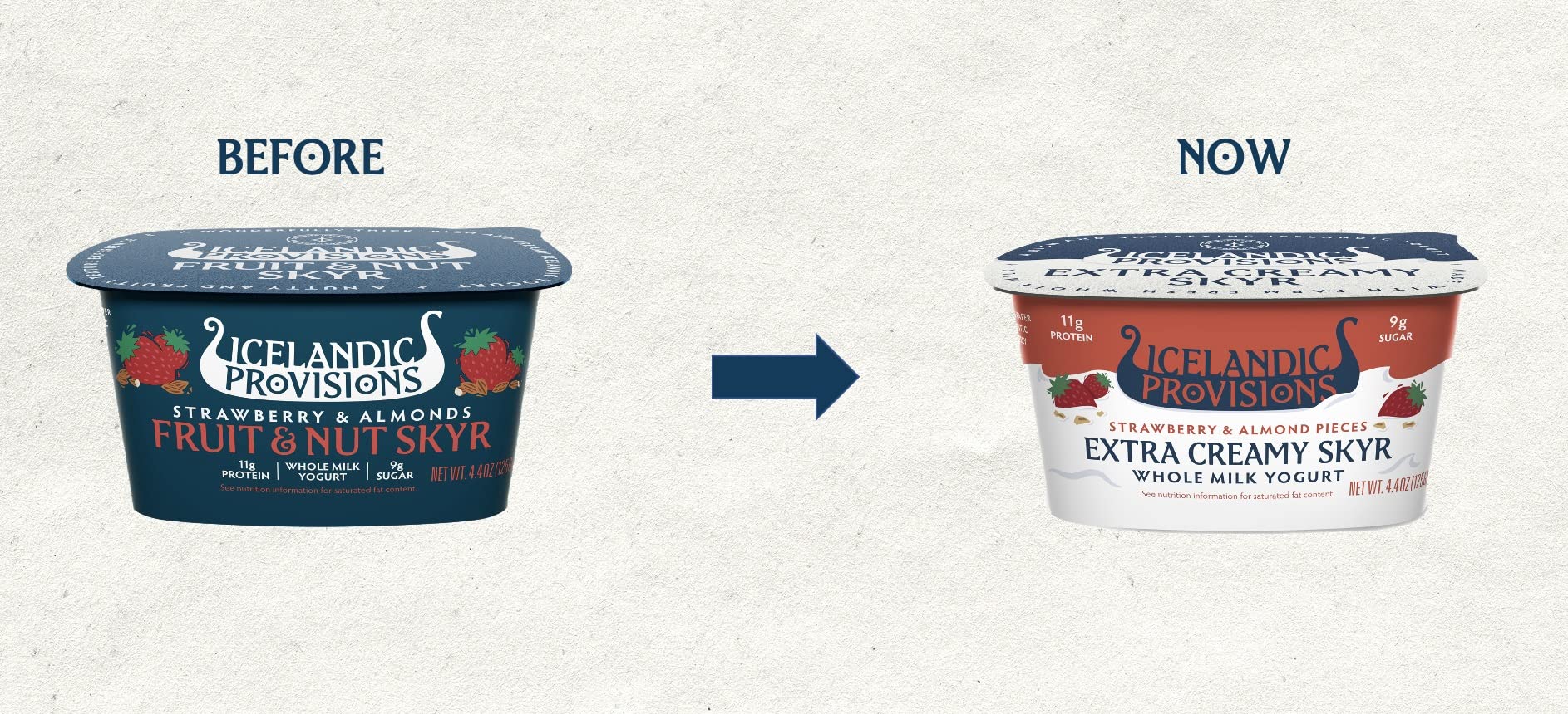 - Q: What makes Icelandic Provisions Skyr different from regular yogurt? A: Icelandic Provisions Skyr is thicker and creamier than regular yogurt, made using the original Icelandic recipe. It contains heirloom Icelandic Skyr cultures, resulting in a rich texture and taste, along with 11g of protein per serving and less sugar.