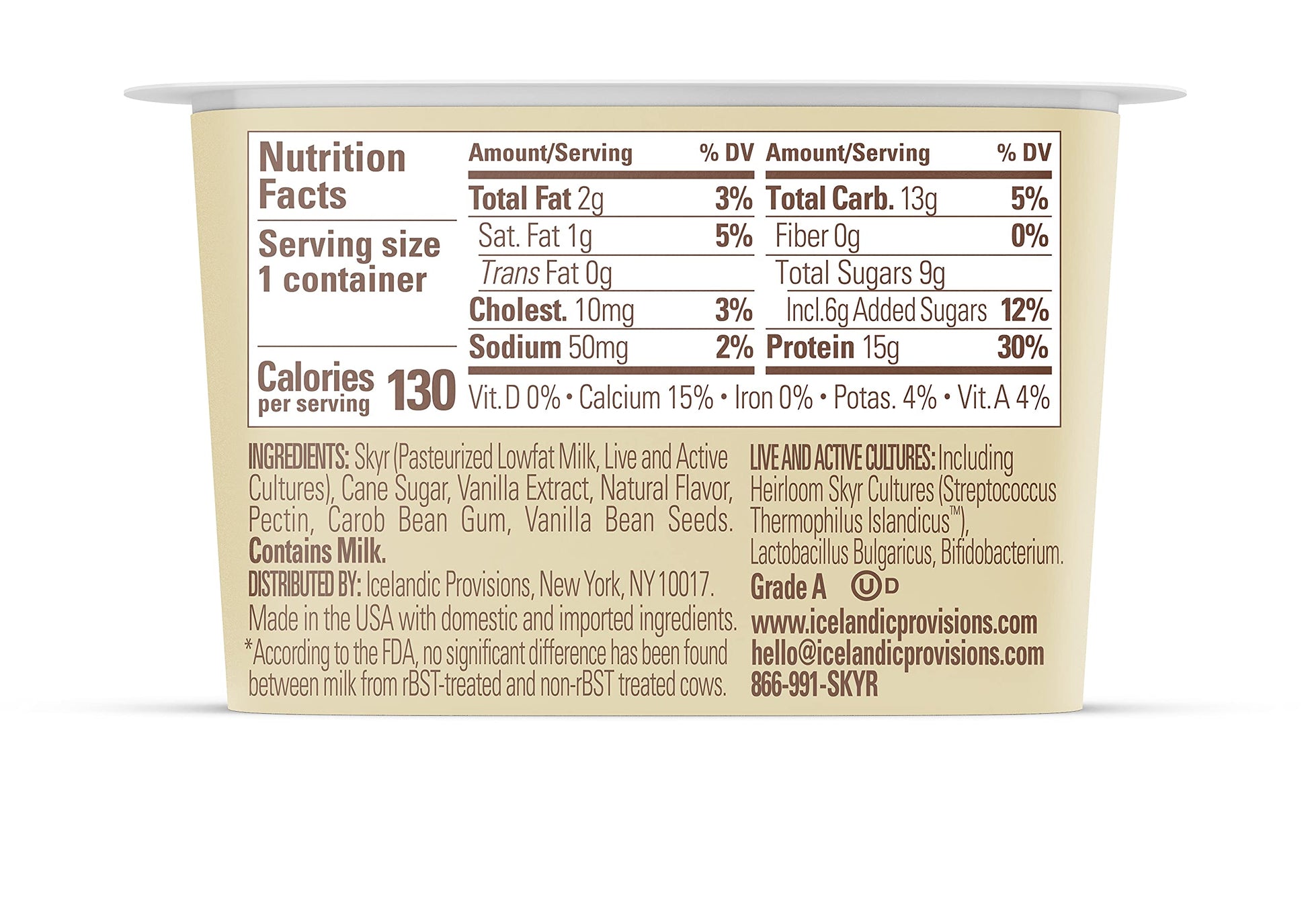 - Q: What flavors are available in Icelandic Provisions Skyr? A: Icelandic Provisions Skyr features a variety of Nordic-inspired flavors, including Vanilla, which is crafted using a blend of three different vanilla beans for a rich and complex taste.