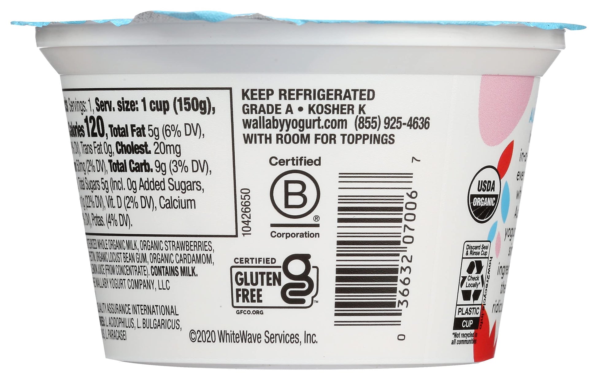 - Q: Is Wallaby Organic Aussie Greek Yogurt suitable for those avoiding artificial ingredients? A: Absolutely! Wallaby Organic Aussie Greek Yogurt is made without artificial colors, flavors, or preservatives, making it a great choice for those looking for a natural and wholesome snack.