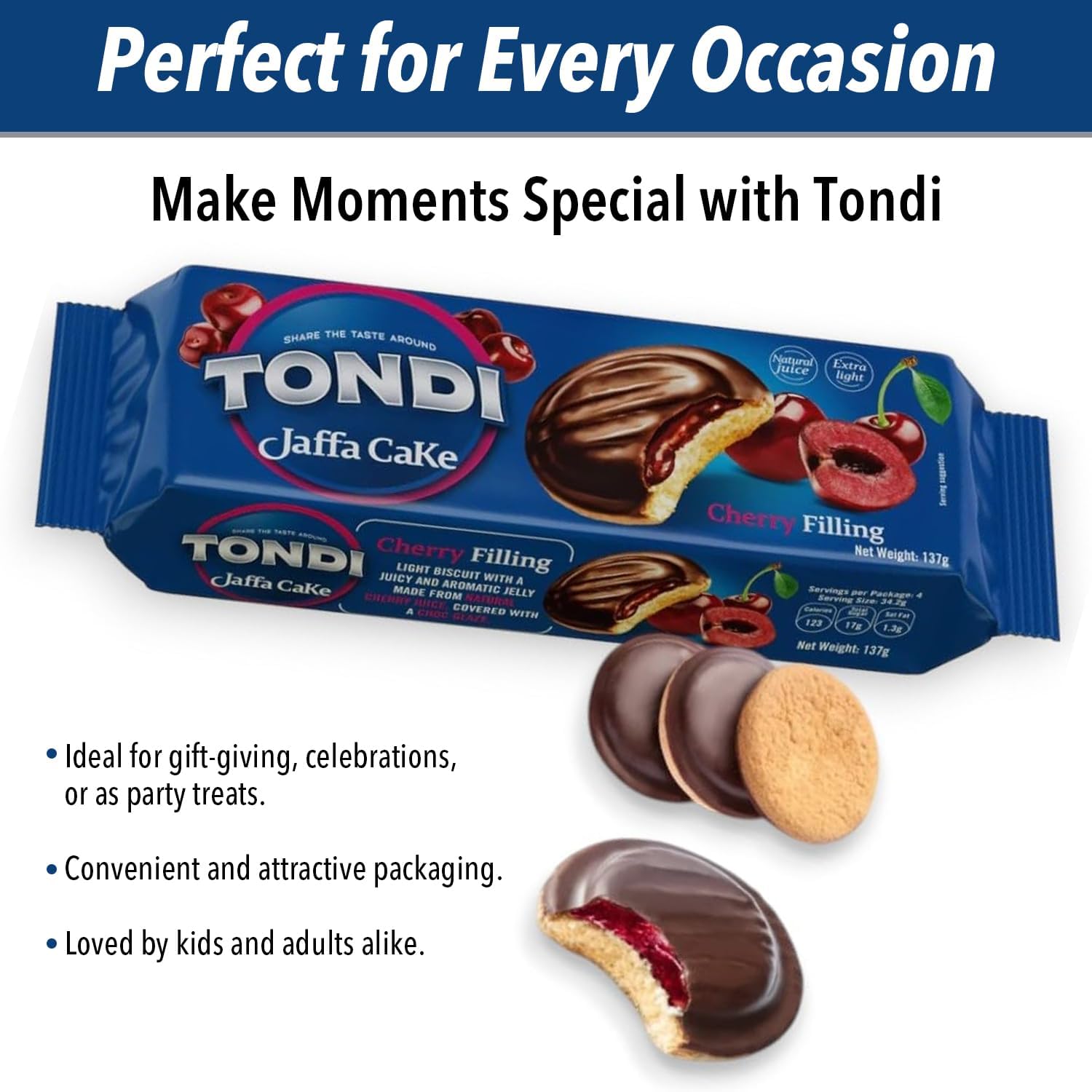 Introducing Tondi'S European Biscuit. Our Cookies Variety Pack Brings You Three Irresistible Flavors-Orange, Cherry, And Strawberry. Each Is Carefully Made With A Spongy, Soft Cookies Base And A Luscious, Fruit-Filled Center. These Jaffa Cakes Are Topped With A Rich, Glossy Chocolate Coating. Our Jaffa Cakes Variety Pack Offers A Great Balance Of Flavors, Providing An Ideal Snack Experience. Each Jaffa Cake In This Delightful Variety Pack Features A Unique Fruit Jelly Filling, Offering A Refreshing Burst Of Natural Flavor. The Orange Filling Offers A Tangy Zest, The Cherry Filling A Sweet, Tart Burst, And The Strawberry Filling A Rich, Berry Sweetness. The Jaffa Biscuits And Chewy Fruit Center Create A Satisfying Texture, Perfectly Complemented By The Smooth Chocolate Coating. European Cookies Variety Pack Are Ideal For Gifting Or Special Occasions. Their Elegant, Glossy Appearance And Premium Flavor Make Our Desserts Cookies An Ideal Choice For Birthdays, Holidays, Or Celebrations. These Gourmet Cookies Will Leave A Lasting Impression. These European Biscuits Are Made With High-Quality Ingredients And Traditional Methods. Tondi'S Dedication To Quality And Authenticity Shines Through In Every European Biscuit Cookies, Making It A Great Choice For Anyone Who Appreciates Fine European Confectionery. Tondi'S Cookie Variety Pack Is An Exceptional Snack Or Dessert. Whether You'Re Indulging In The Sweet And Tangy Fruit-Filled Layers Or Savoring The Smooth Chocolate Finish, Each Bite Is A Delightful Experience. These Gourmet Cookies Variety Pack Brings Great European Biscuit-Making To Your Home.