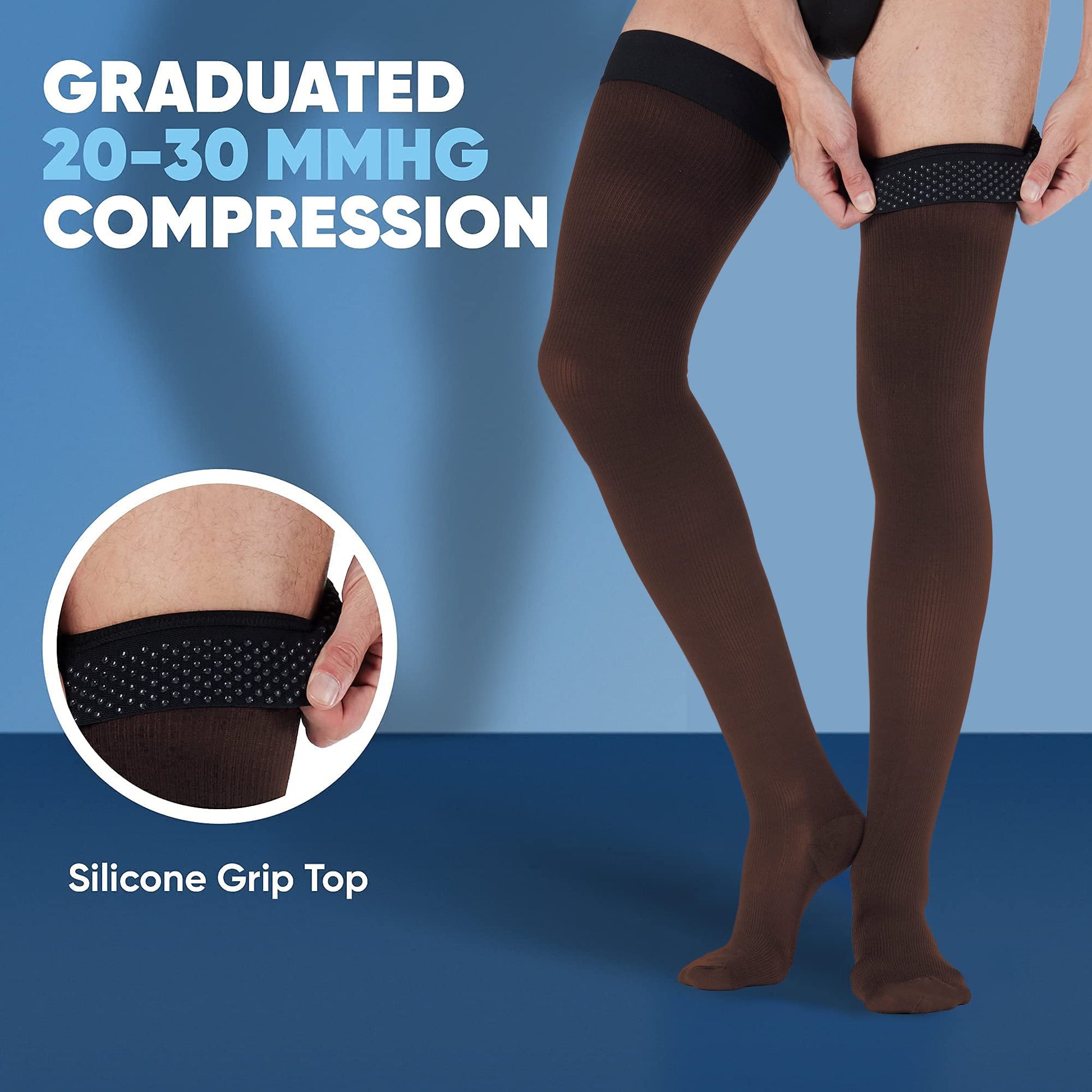 mens thigh highs compression socks over knee high sock thigh-high full leg for men stocking stockings hose xl black mmhg circulation thick mens size