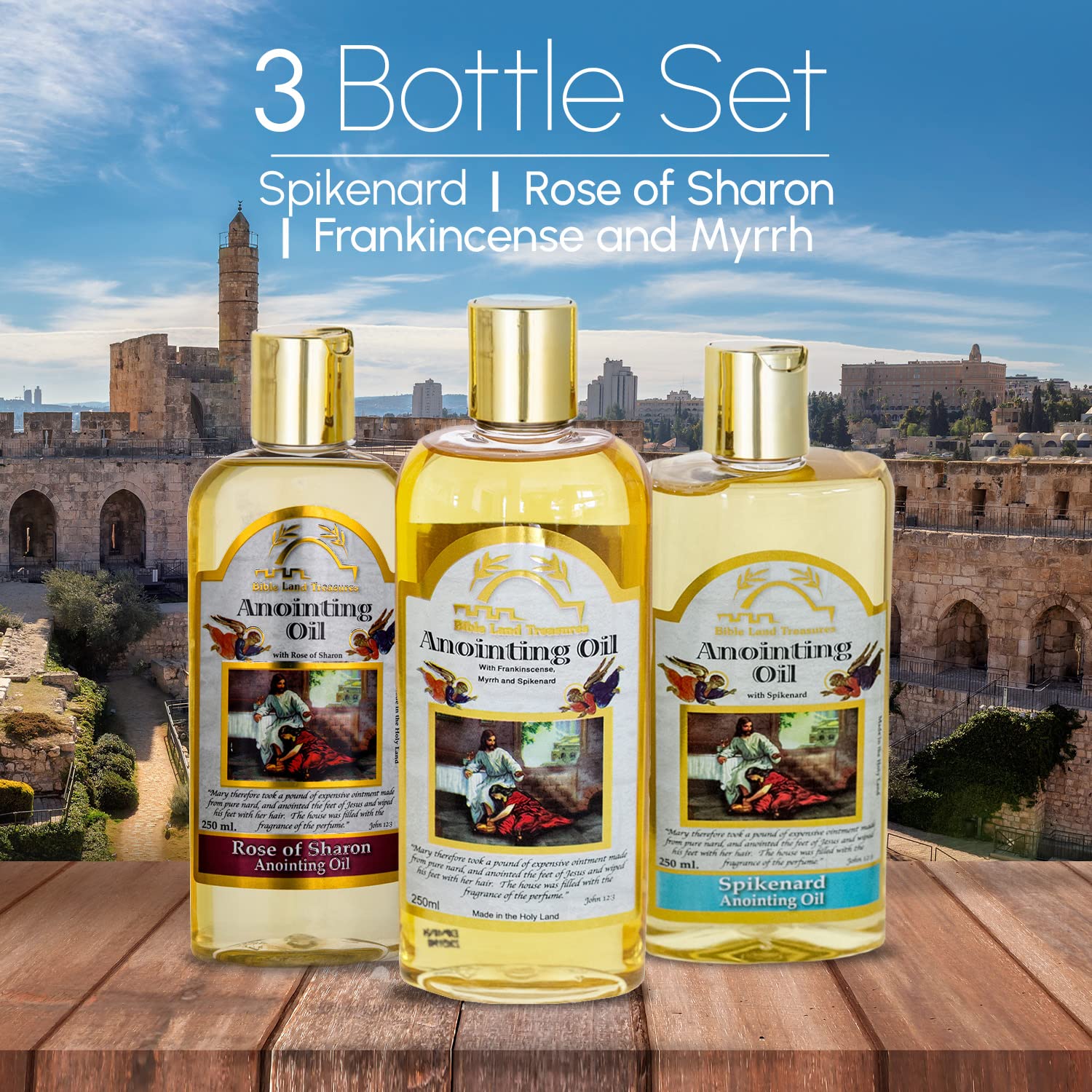 Q: What are the main ingredients in the Bible Lands Treasure Anointing Oil?A: The Bible Lands Treasure Anointing Oil includes traditional ingredients such as Spikenard, Rose of Sharon, Myrrh, and Frankincense, each highly valued in ancient Biblical times for their aromatic and healing properties.