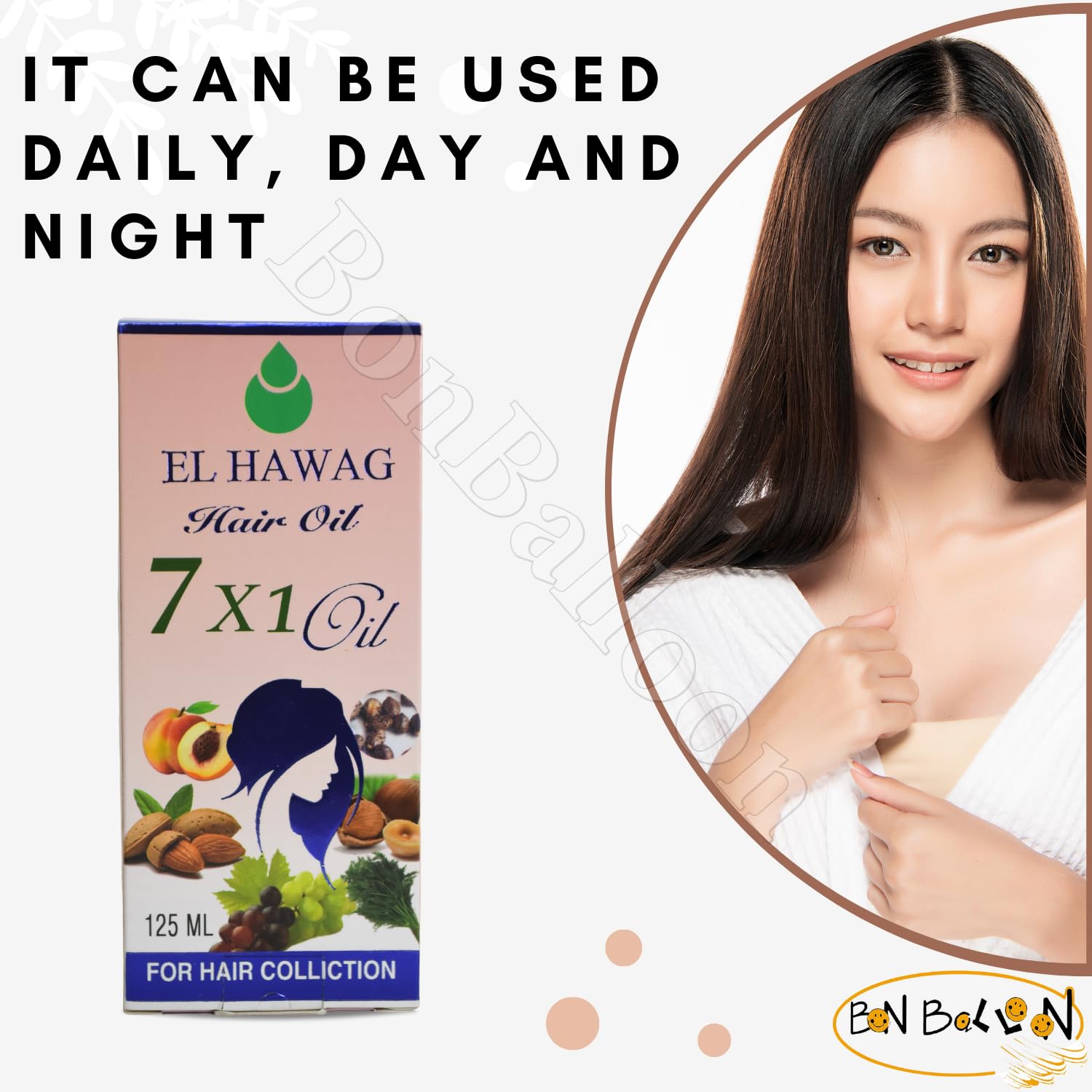 - Q: What are the main benefits of using bonballoon Original Elhawag Oil Hair Care? A: The bonballoon Original Elhawag Oil Hair Care contains a blend of seven natural oils, including castor, apricot, almond, hazelnut, burdock, dill, and grape oils, which work together to strengthen hair from root to end, promote healthy scalp, and enhance overall hair condition.