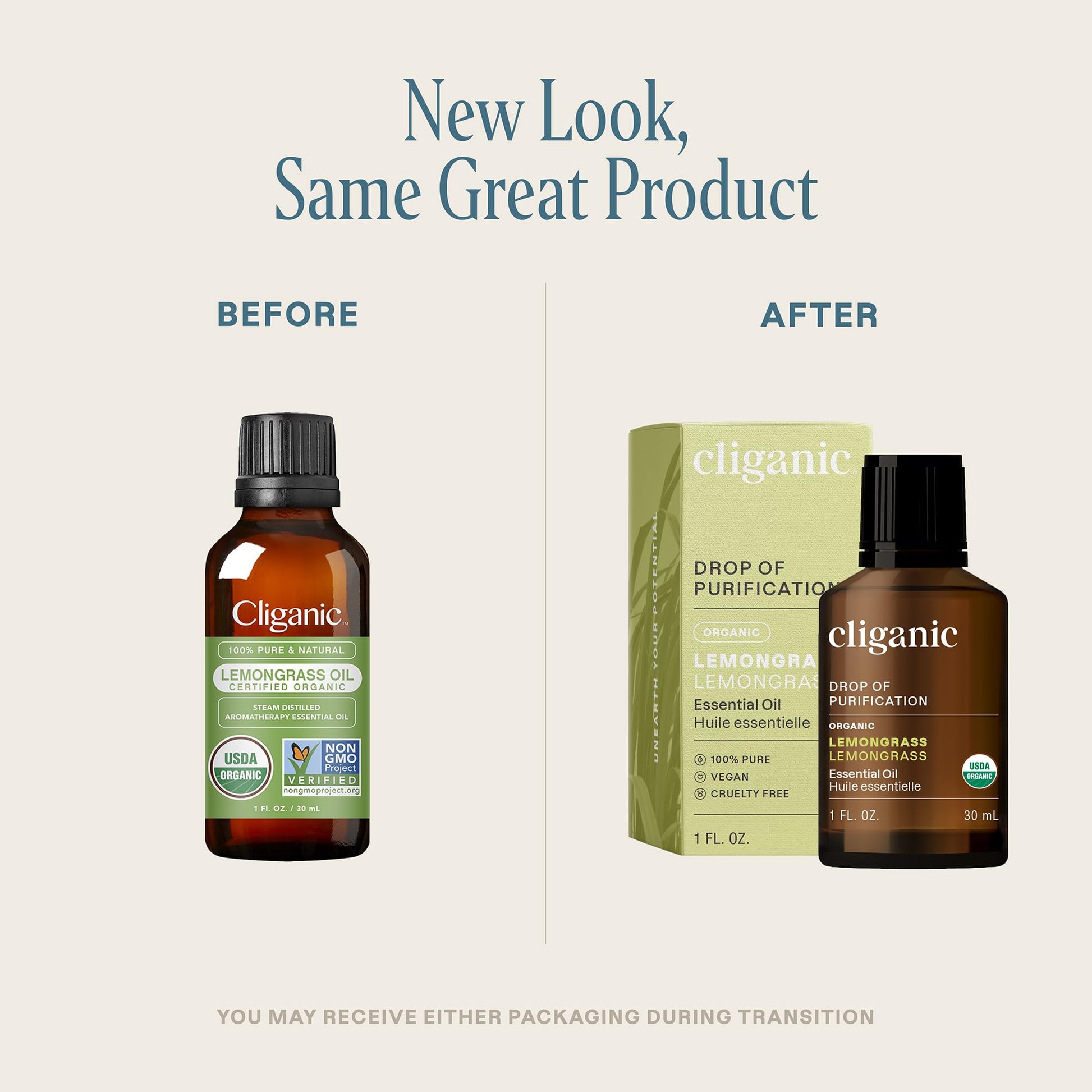 - Q: Is Cliganic Organic Lemongrass Essential Oil safe for topical use? A: Cliganic Organic Lemongrass Essential Oil is a 100% pure single ingredient oil. While it can be used for various applications, it is recommended to dilute it with a carrier oil before applying it to the skin to prevent any irritation.
