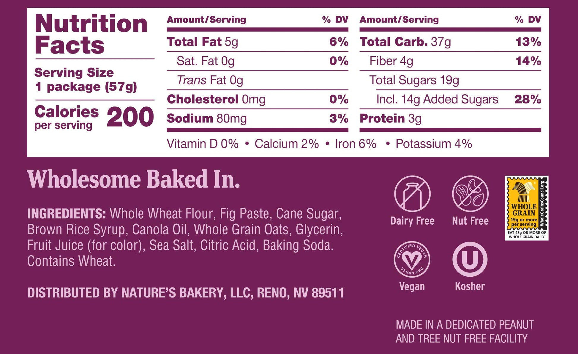 Nature'S Bakery Whole Wheat Fig Bars Are Fuel For Everyday Life'S Great Journeys. Made With Wholesome And Natural Ingredients, Our Delicious Soft-Baked Baked Bars Are Filled With Real Fruit For An On-The-Go Snack That Satisfies. Perfectly Portioned In Two Bars, Our Twin-Packs Don'T Melt, Crumble Or Break--They'Re The Daily Snack Companion You Can Rely On To Be There When You Need Them Most.