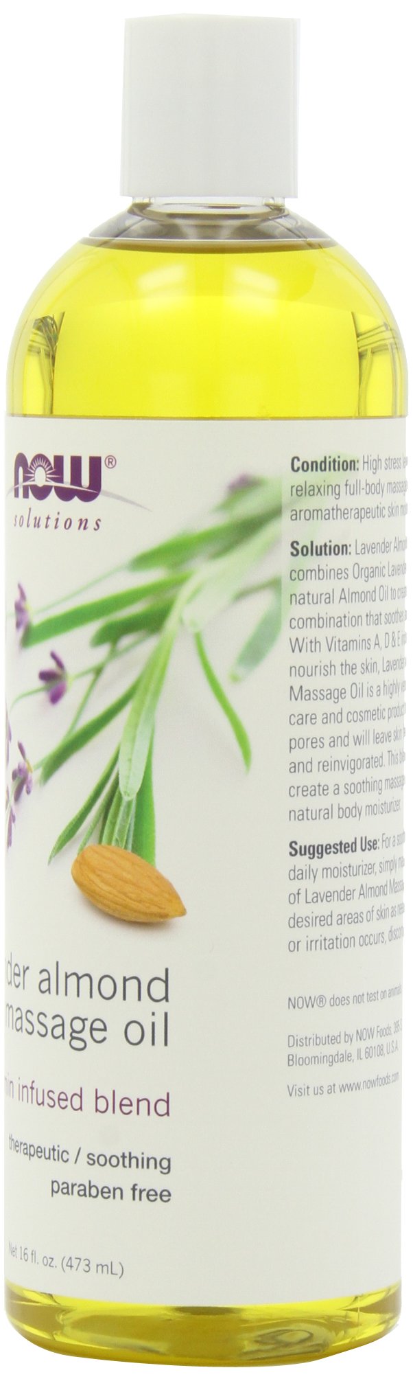 - Q: Can I use this oil for aromatherapy purposes? A: Absolutely! The calming scent of lavender in NOW Lavender Almond Massage Oil makes it a great choice for aromatherapy. You can use it in a diffuser or add a few drops to your bath for a relaxing atmosphere.