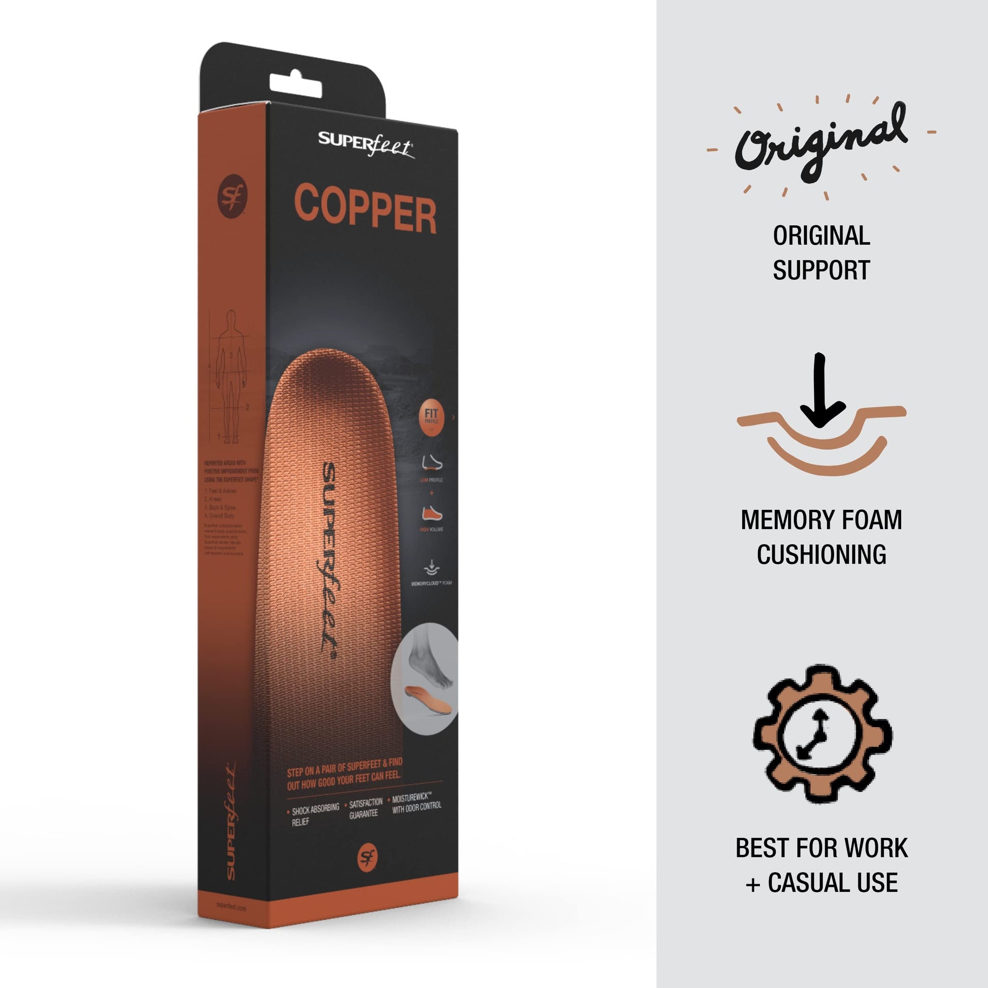 - Q: What makes Superfeet Copper insoles different from other insoles? A: Superfeet Copper insoles feature a unique memory foam design that captures the shape of your foot for personalized support, unlike many standard insoles that offer generic cushioning. This ensures a more tailored fit, enhancing comfort and stability.