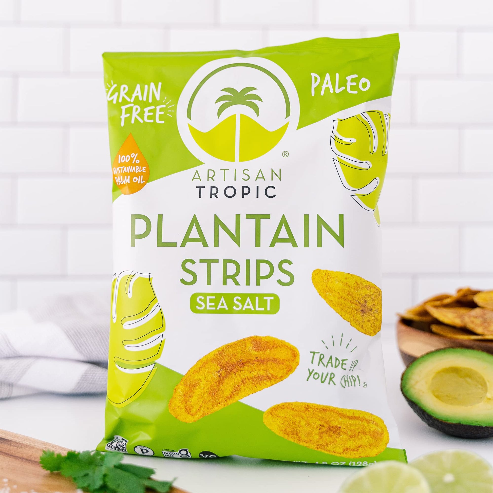 MORE NUTRIENTS THAN POTATO CHIPS: Enjoy healthy snack alternatives with our vegan plantain strips! Our crispy chips are a great source of potassium, magnesium, and vitamin B6. | HEALTHY CHIPS: Our plantain strips are a GMO Free, Gluten Free, Preservative Free, Vegan snack. Large bags are perfect for dipping, parties and anytime snacking. | SUSTAINABLE, NON-HYDROGENATED PALM OIL: Artisan Tropic has received the highest level of RSPO Certification (Roundtable on Sustainable Palm Oil) as a manufacturer and brand. These paleo plantain chips are good for you and the planet! | HAND-PICKED PLANTAINS: Experience a taste of the Tropics with our plant-based ingredients for simply delicious banana chips. We only use Dominico Harton Plantains that are always Single Sourced for the Highest Quality | 12 Pack of 4.5 oz. bags. Sea Salt flavored.