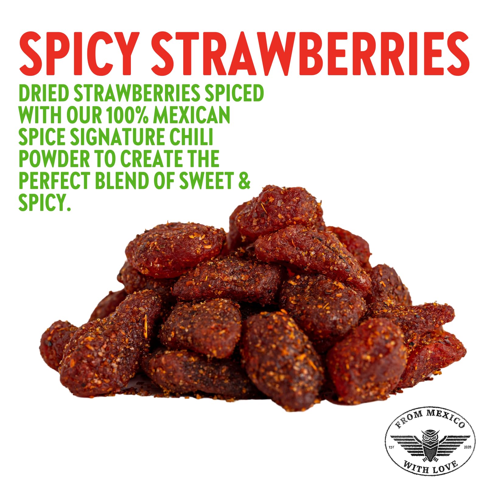 - Q: What is the flavor profile of CHUZA Spicy Dried Strawberries? A: CHUZA Spicy Dried Strawberries offer a unique flavor profile that balances sweet fruitiness with a spicy kick, inspired by traditional Mexican candy.