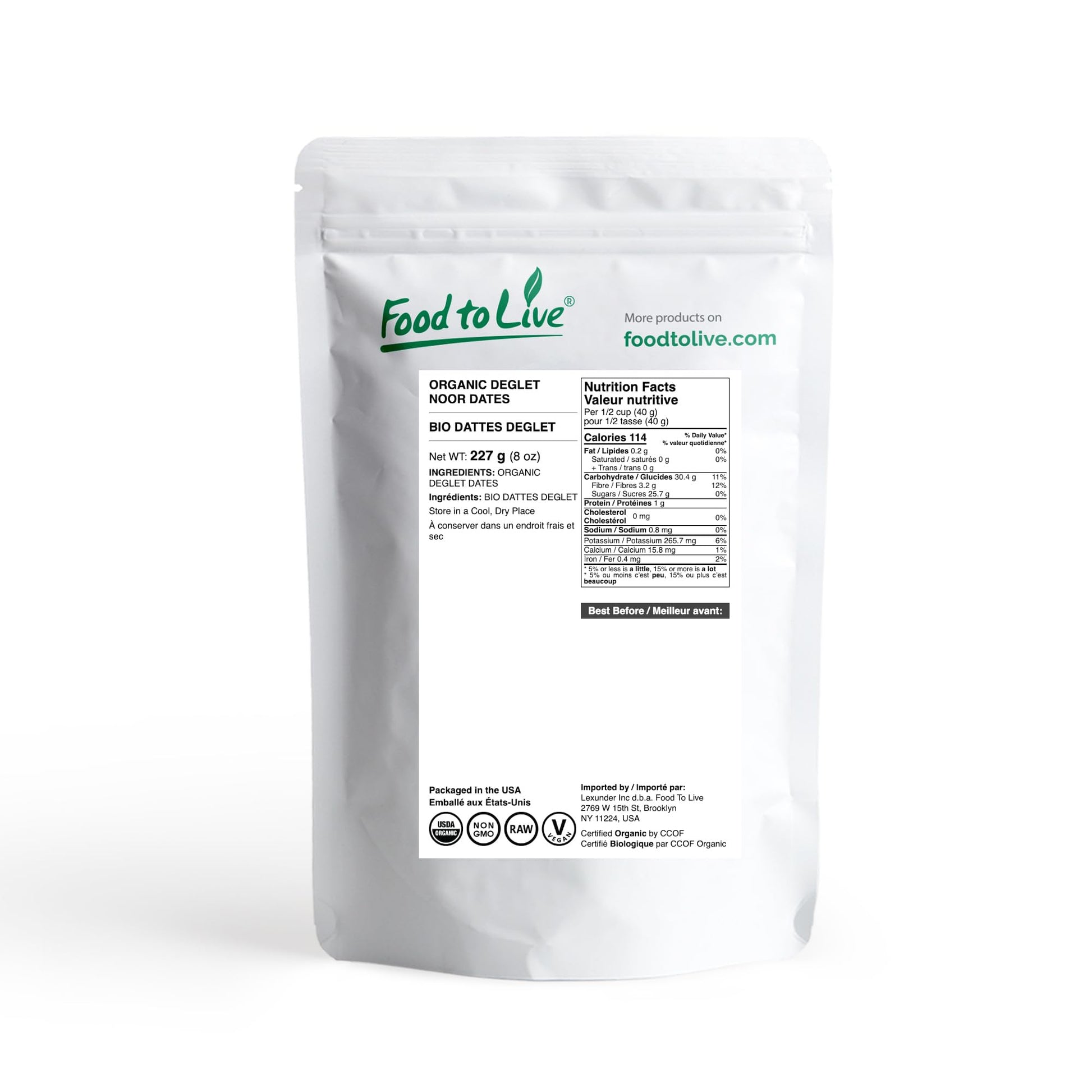 Food to Live Organic Deglet Noor Dates, 8 Ounces - Pitted, Non-GMO, Soft & Juicy, Unsulfured, Raw, Dried Fruit, No Sugar Added,