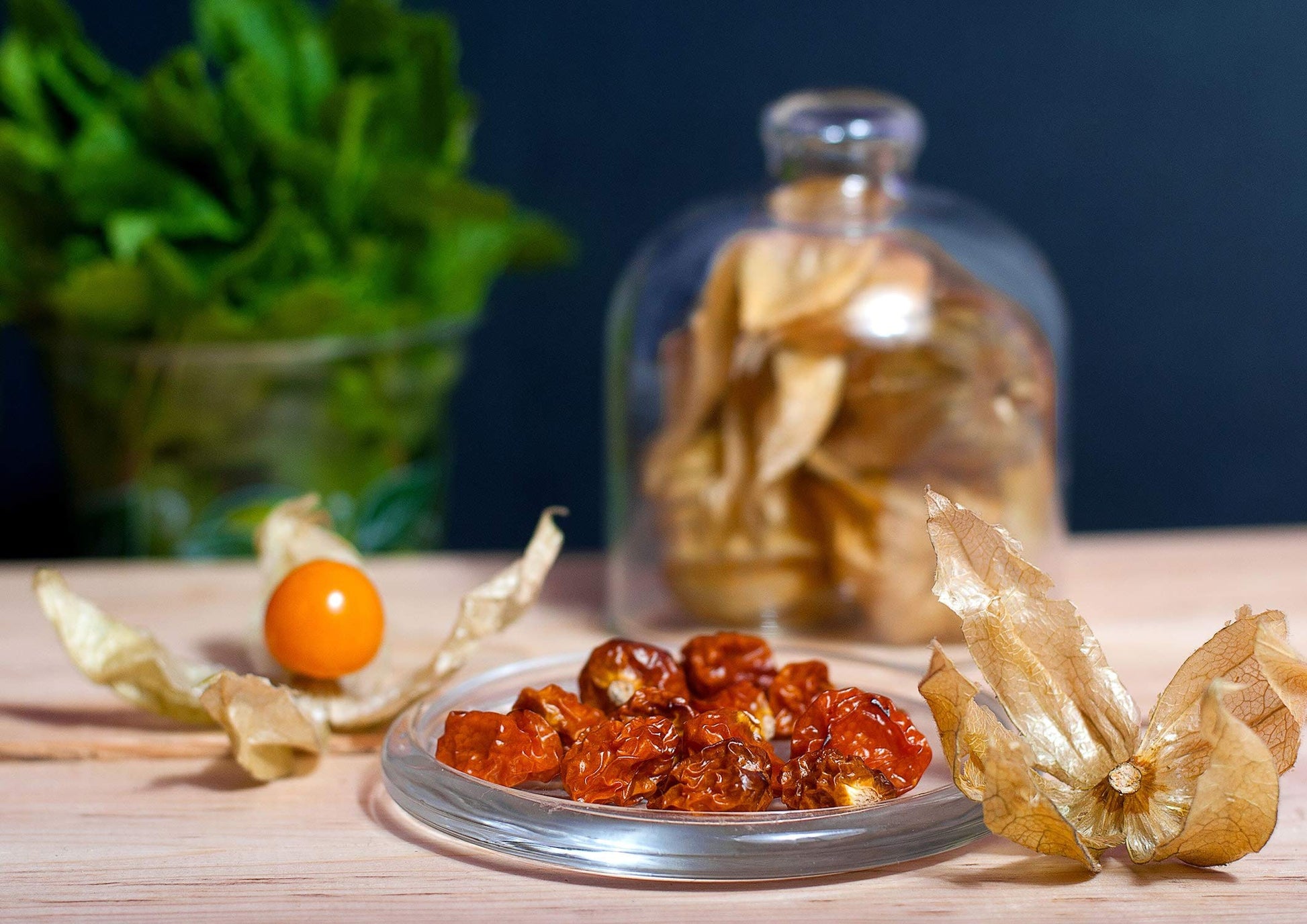 Physalis is a part of the Nightshade family of plants and looks quite attractive, which prompts many people to grow it in their gardens. The fruits of the golden berries plant are hidden within a soft protective husk (calyx) and resemble cherry tomatoes (albeit yellow-orange in color) when harvested. The husk extends the shelf life of the fresh fruit to about 30-40 days. Once it’s removed, golden berries keep as well as raw tomatoes, unless they are dehydrated.