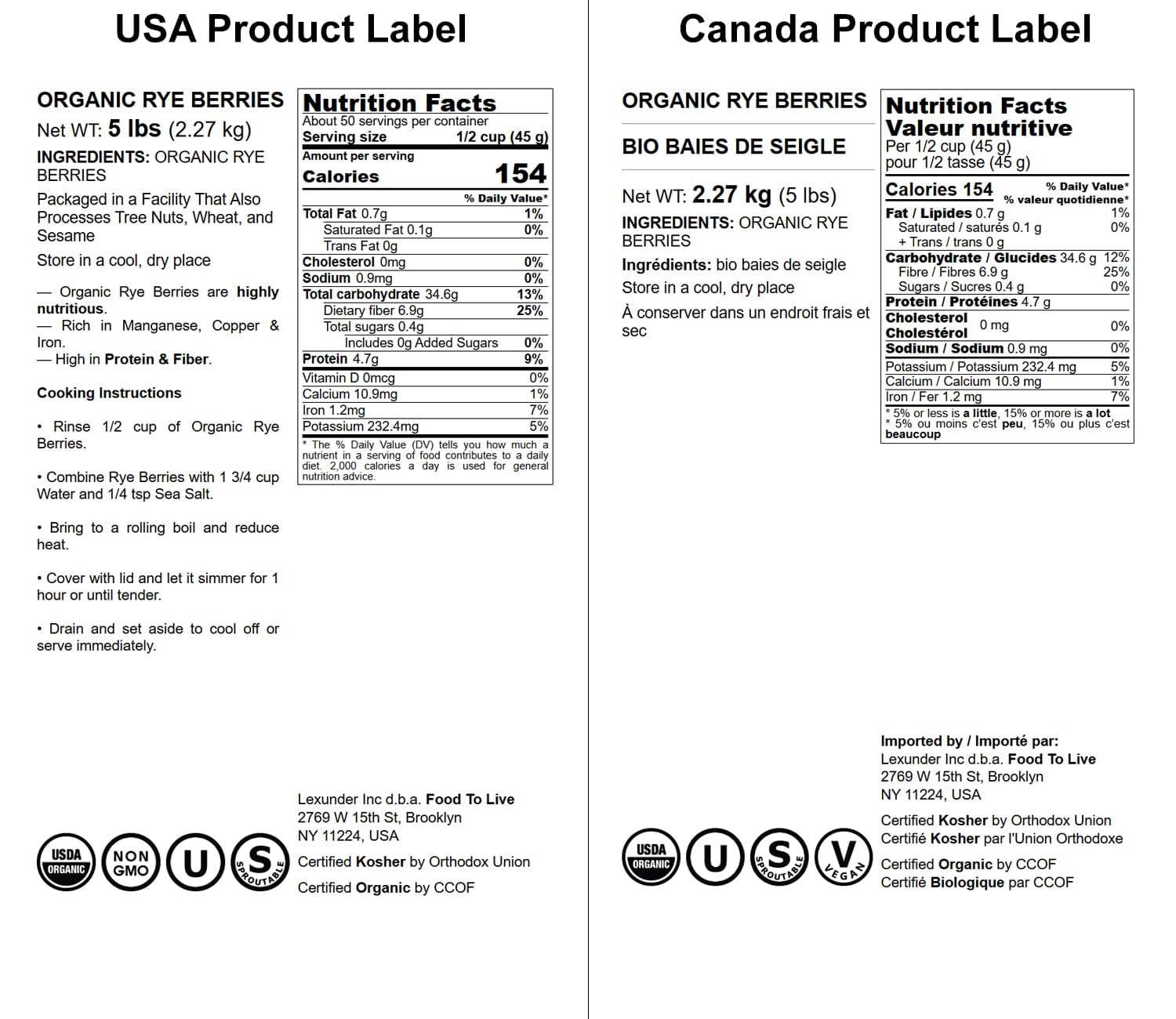 - CERTIFIED ORGANIC: Purchase with confidence knowing that our organic rye berries are non-GMO and grown without harmful chemicals.