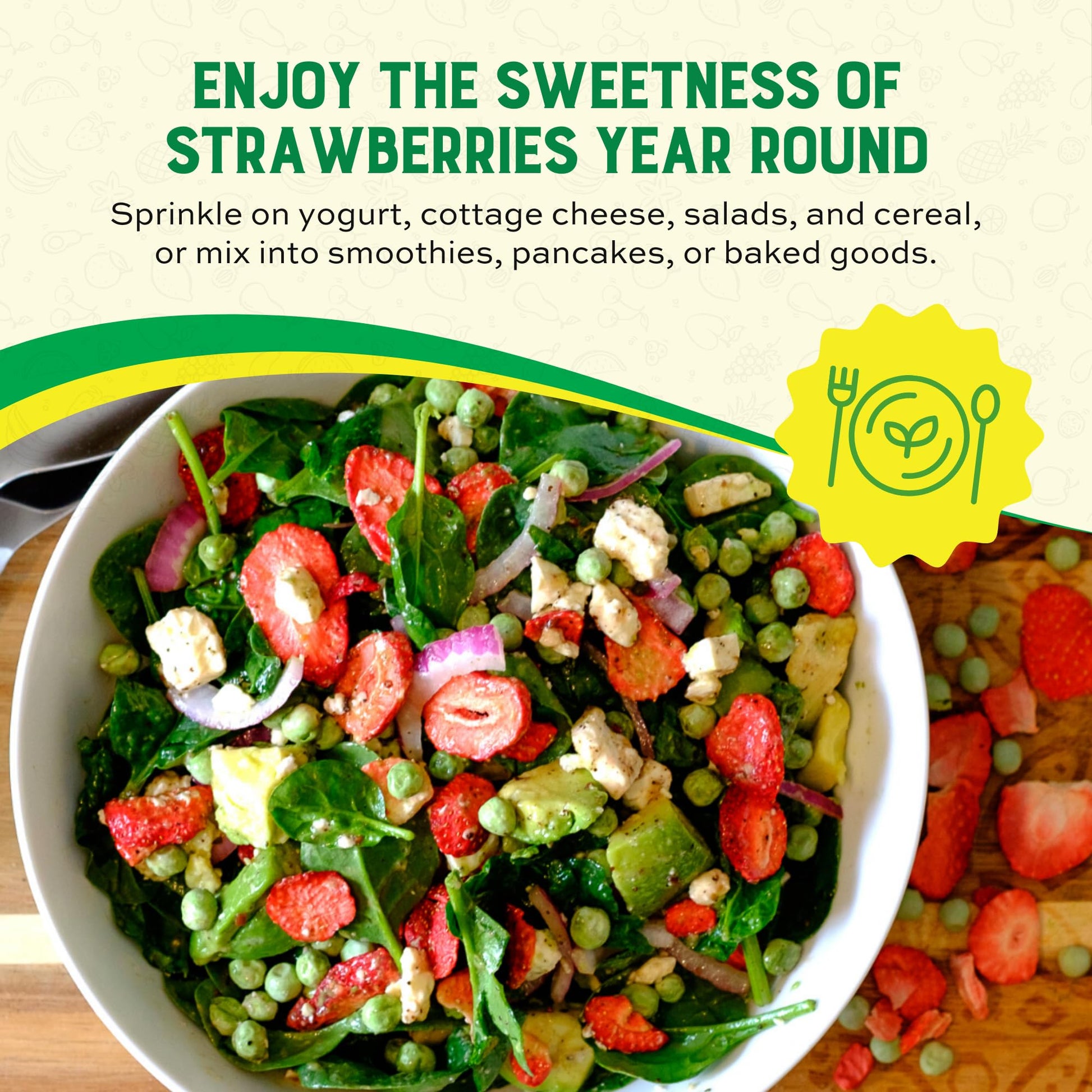 - Q: How can I use freeze-dried strawberries in my meals? A: You can use freeze-dried strawberries in various ways: sprinkle them on yogurt, cottage cheese, salads, or cereal, mix them into smoothies, pancakes, or baked goods for a burst of flavor and added nutrition.