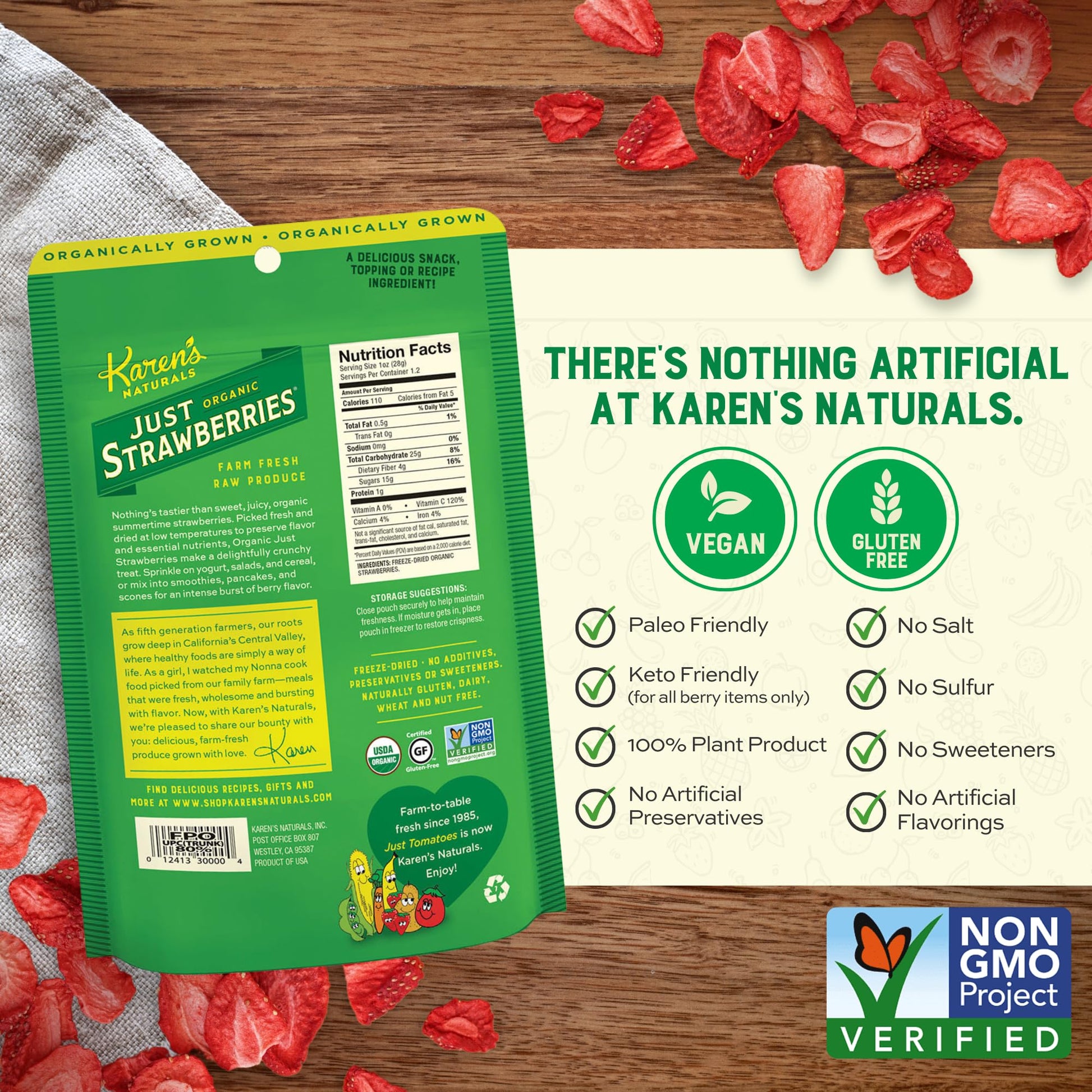 Karens Naturals Organic Freeze-Dried Strawberries, 1.2oz, Pack of 12 - Crunchy, Flavor Packed Freeze Dried Fruit Snack, Organic