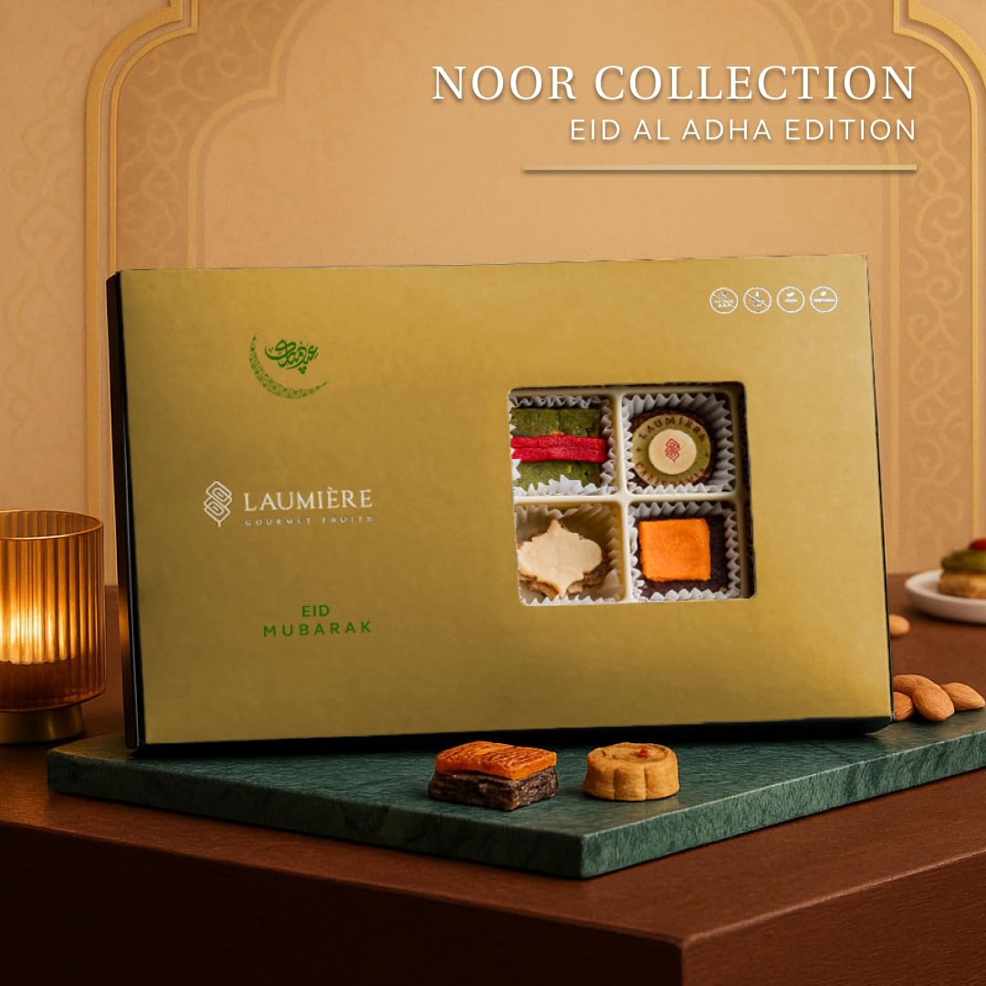 Experience Eid with Noor Collection [Eid Al Adha Edition]. Indulge in our handpicked, gourmet and healthy treats, crafted with the festive spirit of Eid Al Adha. Halal certified with no added sugars or preservatives, our guilt-free delicacies will satisfy your cravings and make this special time unforgettable for you and your loved ones.