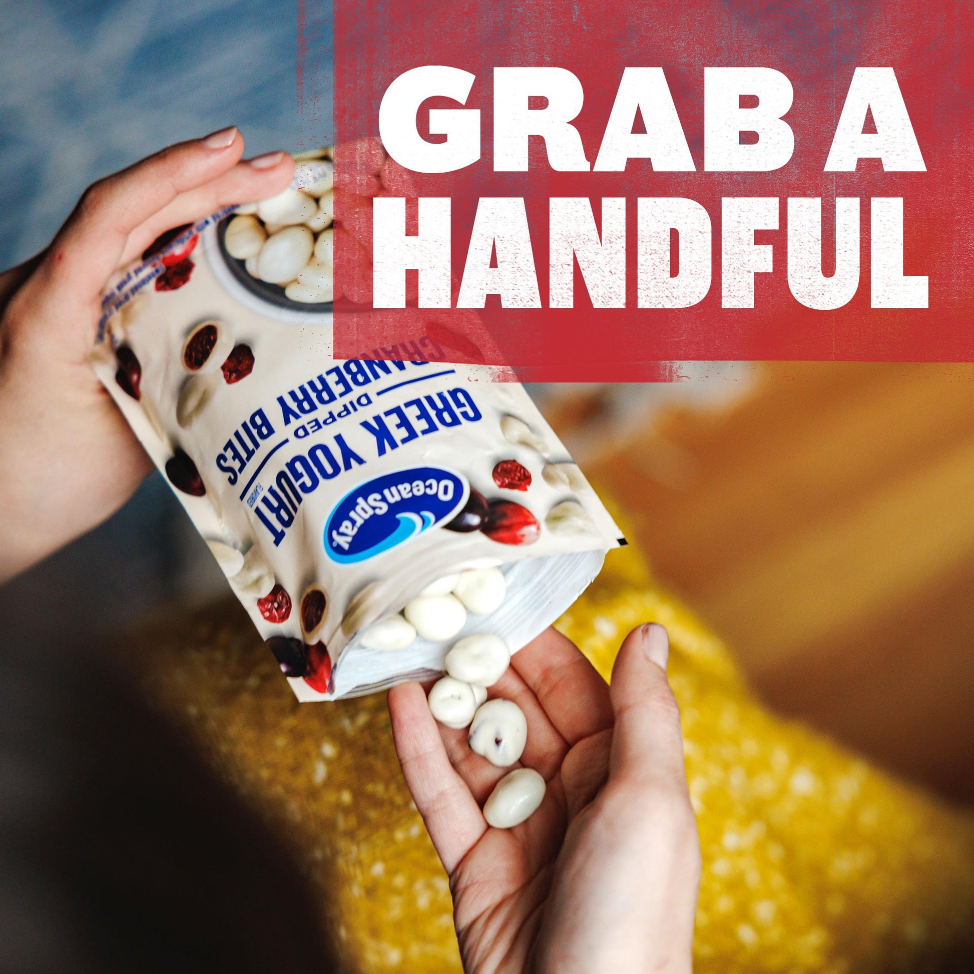 Bold cranberry flavor. Smooth creamy coating. Ocean Spray® Craisins® Greek Yogurt Covered Dried Cranberries. The cranberries you love with creamy Greek yogurt flavor. Enjoy the benefits of cranberry, even more. Real, bold dried cranberries dipped in a satisfying Greek yogurt flavored coating in every dried fruit pouch. Enjoy these little tangy treats as on the go snacks. Stash in your desk drawer. Share with friends and family. Or…don't. Stay in. Cozy up on that couch. Sprinkle over your favorite ice cream. And dig in. You and your taste buds deserve it. Step up your entertaining game by adding their bold flavor to apps, charcuterie boards and more. They're also just really good on their own. However you use them, don't let anything stand in the way of your Ocean Spray® Greek Yogurt Covered Craisins® fix. Keep sealed in a dry place to keep these yogurt covered cranberries fresh for longer. Ocean Spray believes in the power of the mighty cranberry; Born Tart. Raised Bold.™