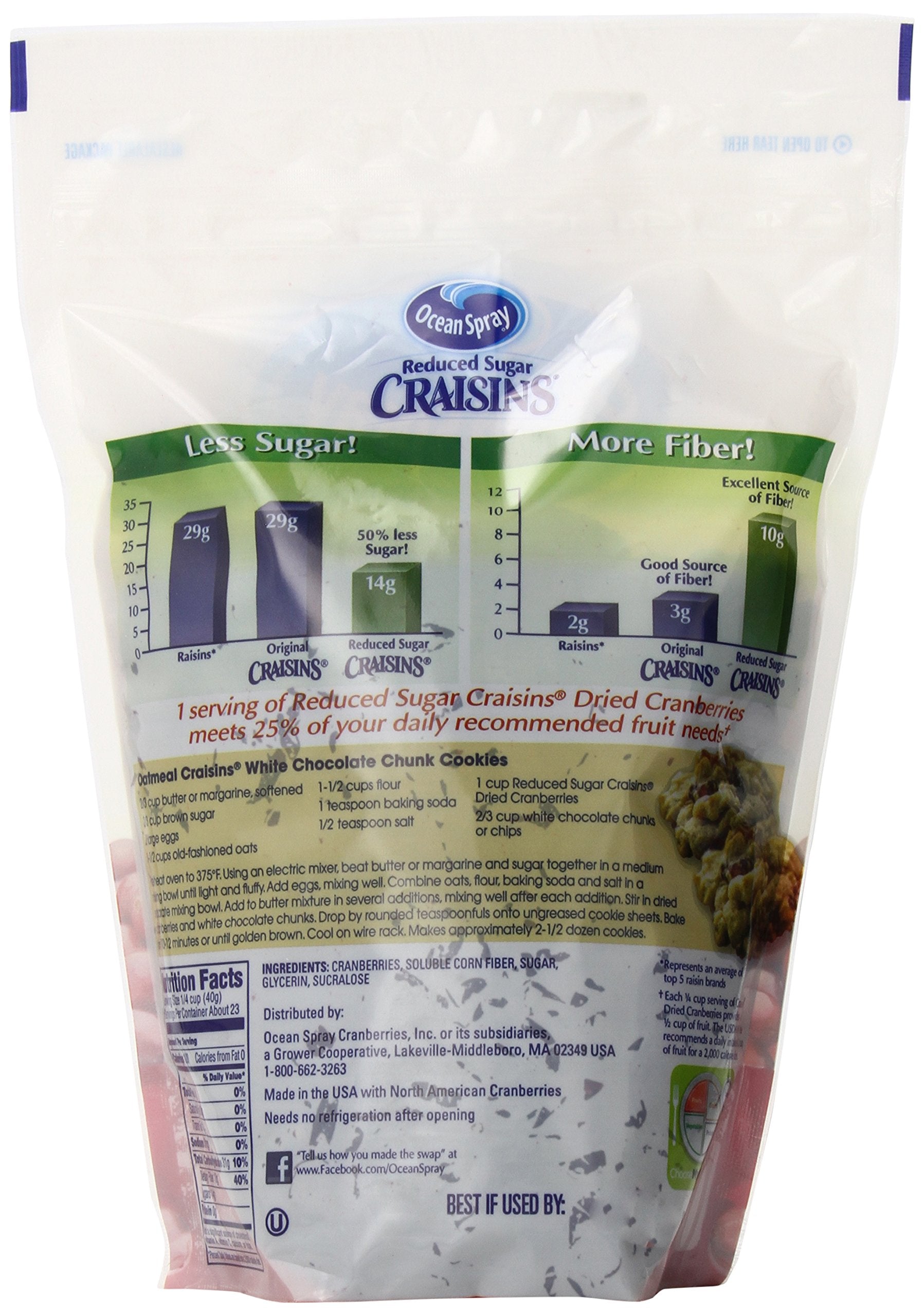 - Q: Are Ocean Spray Reduced Sugar Craisins a good source of fiber? A: Yes, Ocean Spray Reduced Sugar Craisins are an excellent source of fiber, offering a beneficial way to support digestive health while satisfying your sweet cravings.