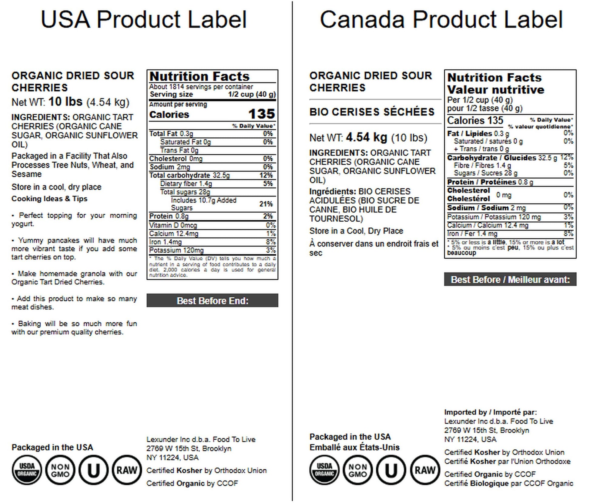 - Q: Are these dried cherries non-GMO and free from additives? A: Yes, our organic dried sour cherries are non-GMO and made with only natural ingredients. They are lightly sweetened with organic sugar and coated with organic sunflower oil, ensuring they are free from toxins and artificial additives.
