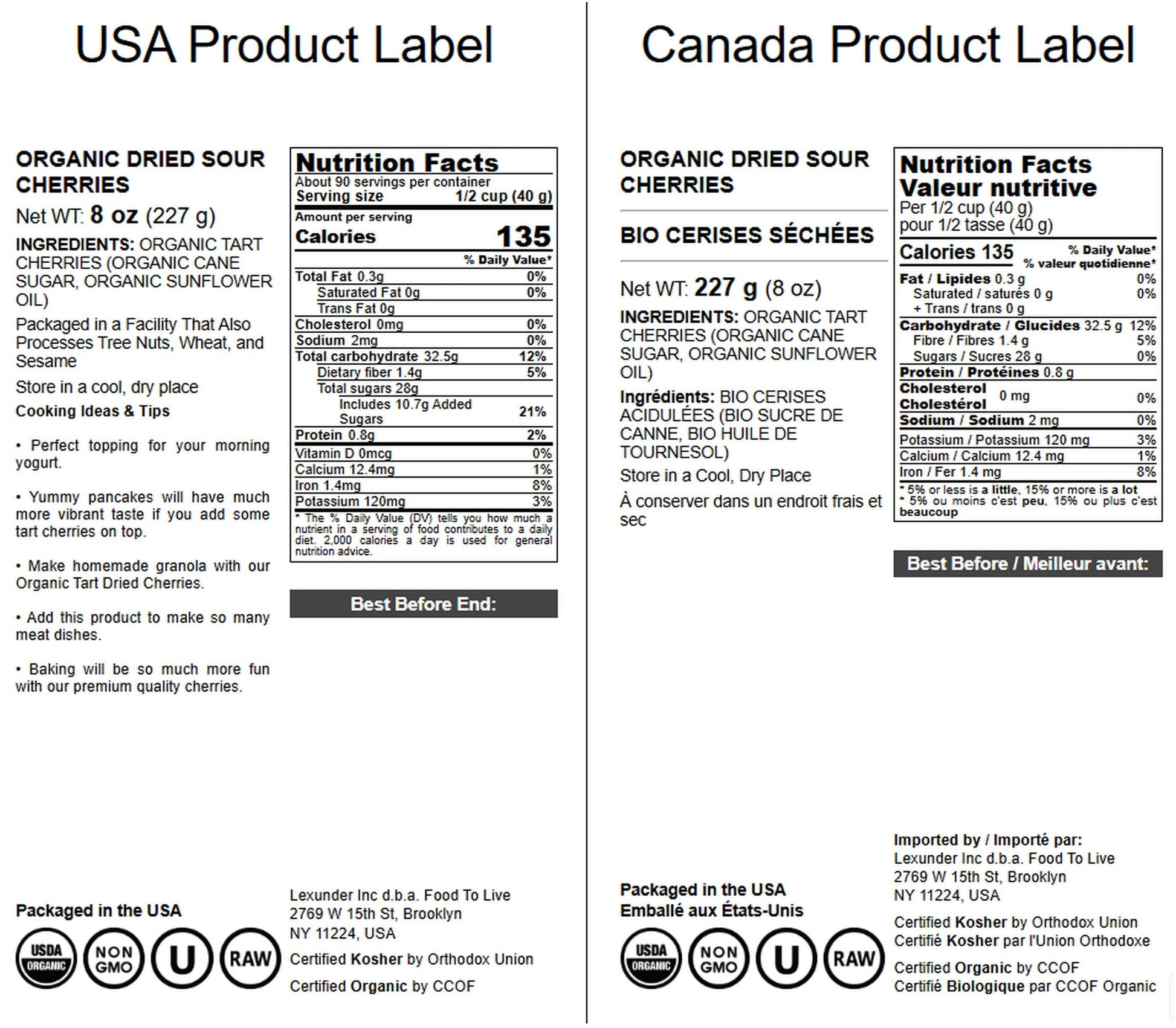 - Q: Are Food To Live dried cherries non-GMO and sulfite-free? A: Yes, Food To Live dried cherries are certified non-GMO and unsulfured. This means they are free from genetically modified organisms and do not contain sulfites, making them a healthier choice for consumers looking for natural snacks.
