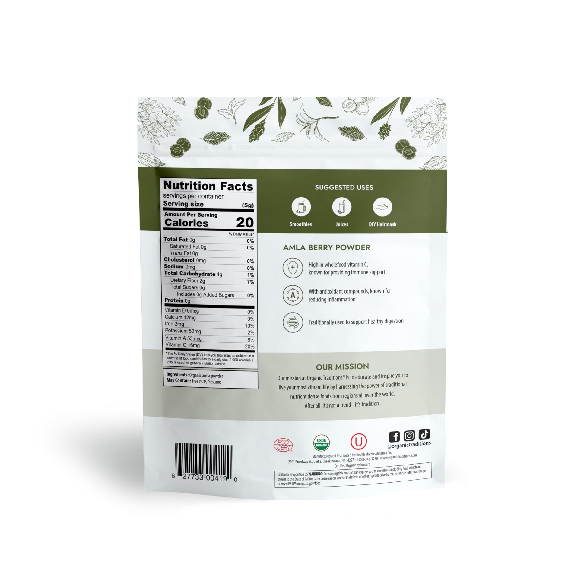 Organic Traditions Organic Amla Berry Powder, Powdered Amla Indian Gooseberry, Non-GMO Organic Powdered Fruit Superfood, 1lb Bag