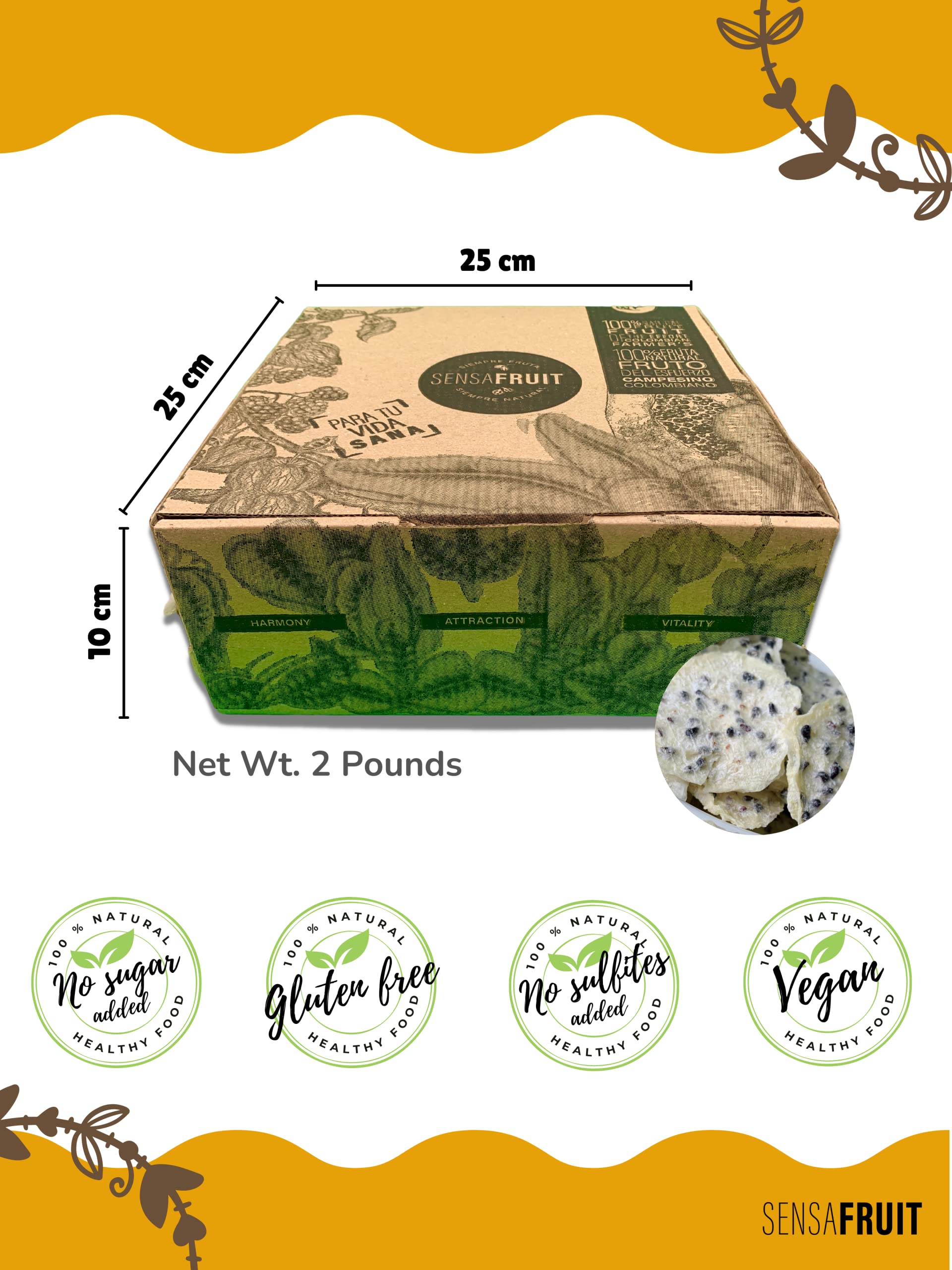 Contains: Each Pack Includes: 2 Bags X1.4 Oz Of Dried Dragon Fruit. 100% Pure Dragon Fruit, No Sugar Added, No Sulfites Added, Enjoy A Delicious And Healthy Snack Anytime, Anywhere! Enjoy A Slowly And Carefully Dehydrated Fruit Without Any Type Of Sugar, Sulfur, Flavoring Or Preservative, Concentrating It'S Natural Flavor And Preserving Most Of The Nutrients And Vitamins. Nourish Your Body And Your Family. Sweet And Soft Slices. Easy To Carry: Keep Them Fresh And Dry In A Zipper Bag, Ideal Size, Delicious Snack To Calm Hunger, For The Kids Lunch Box, Combine It With Your Cereal For Breakfast, Use It As A Topping In Your Favorite Meals And Desserts, Cocktails, Perfect Snack To Take To Work, Use It As An Infusion To Nourish Your Drinks, Shakes, Be Creative. Sensafruit Is A Company Recognized For Compliance And Quality Of Its Products, Together With Our Farmers We Grow Fresh Fruit In The Best Regions Of Colombia, Providing Essential Nutrients And Vitamins For A Healthy Diet And Supporting Colombian Farming Communities. Feed Your Body Healthly While Supporting Farming Communities. Produced By Our Sensafruit Engineers Using The Best Quality Colombian Fruit, Dehydrated In High-Tech Equipment Using Clean And Filtered Air, Subject To Rigorous Quality Controls To Ensure The Perfect Condition And Flavor Of Each Piece Of Fruit.