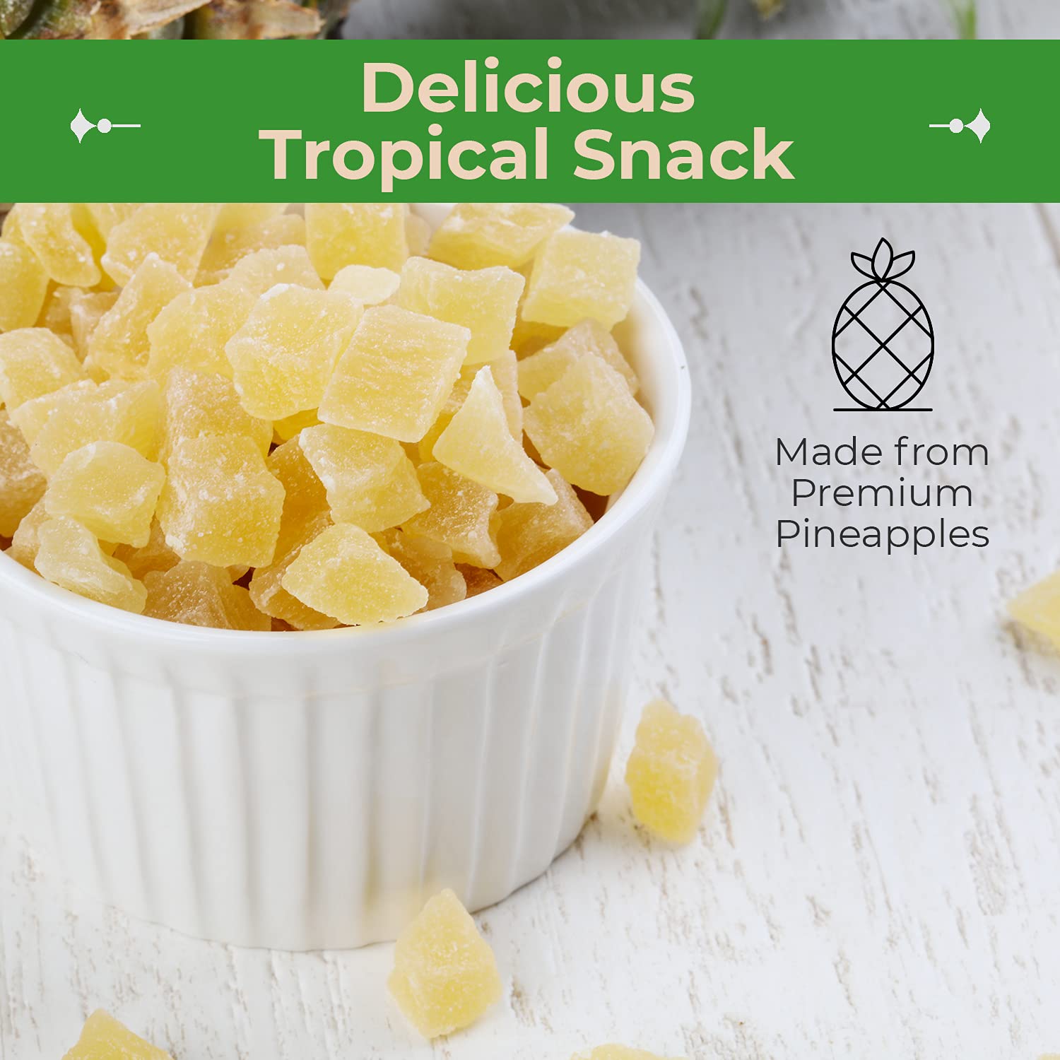 - ? Perfectly Pineapple: Enjoy the perfectly balanced flavor of our dried pineapple, making it a fantastic snack or recipe ingredient.