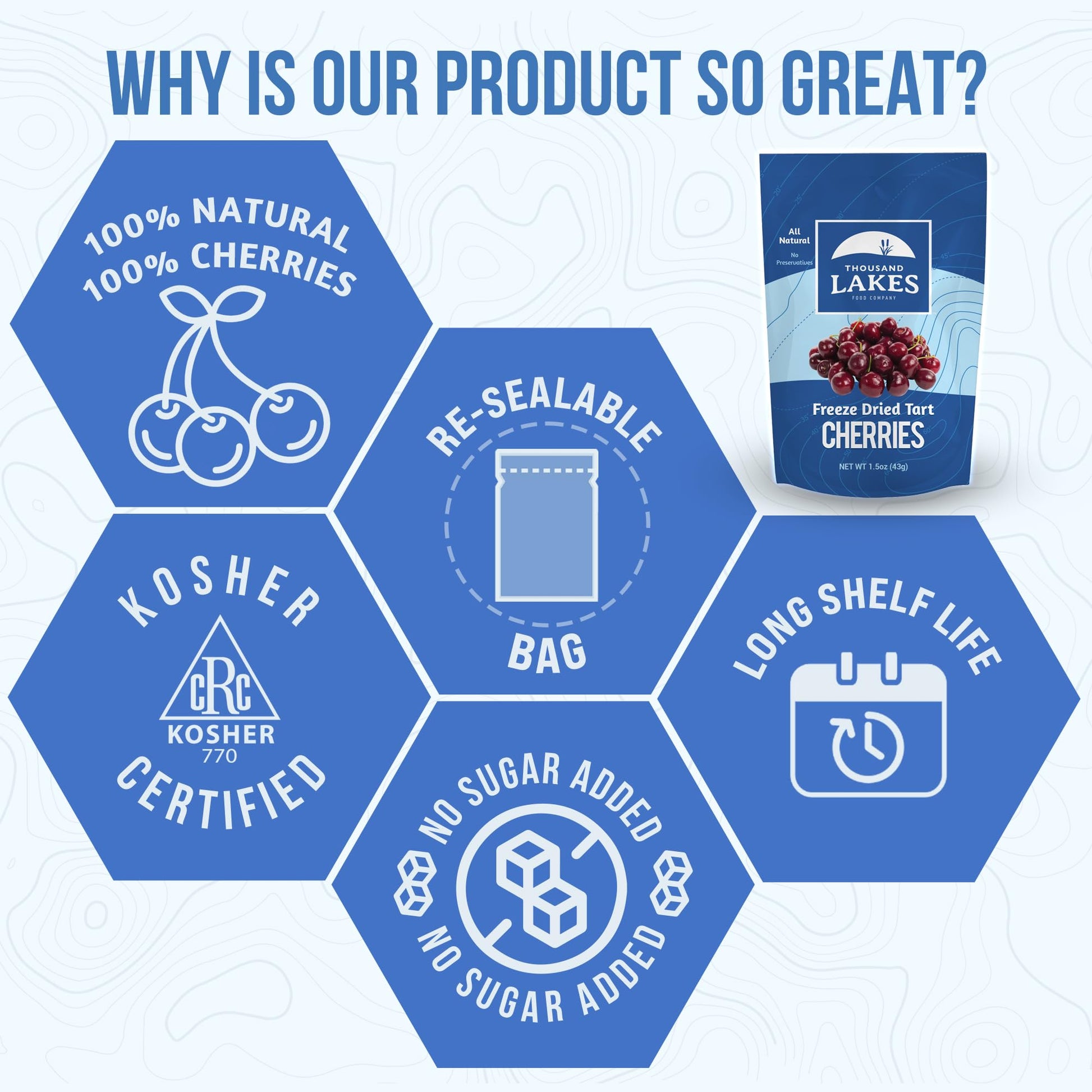 Thousand Lakes Freeze Dried Fruit - Tart Cherries 2-pack 1.5 ounces (3.0 ounces total) | No Sugar Added | 100% Cherries