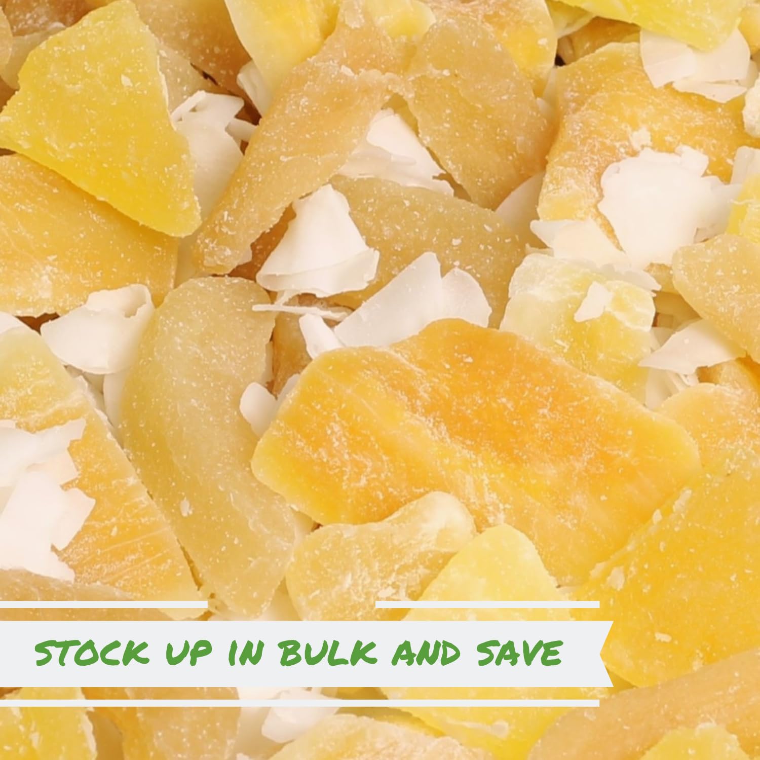 Q: What are the main ingredients in the Tropical Mixed Dried Fruit Medley?A: The Tropical Mixed Dried Fruit Medley includes a delightful combination of dried mango slices, pineapple chunks, guava pieces, and coconut, providing a rich tropical flavor in every bite.