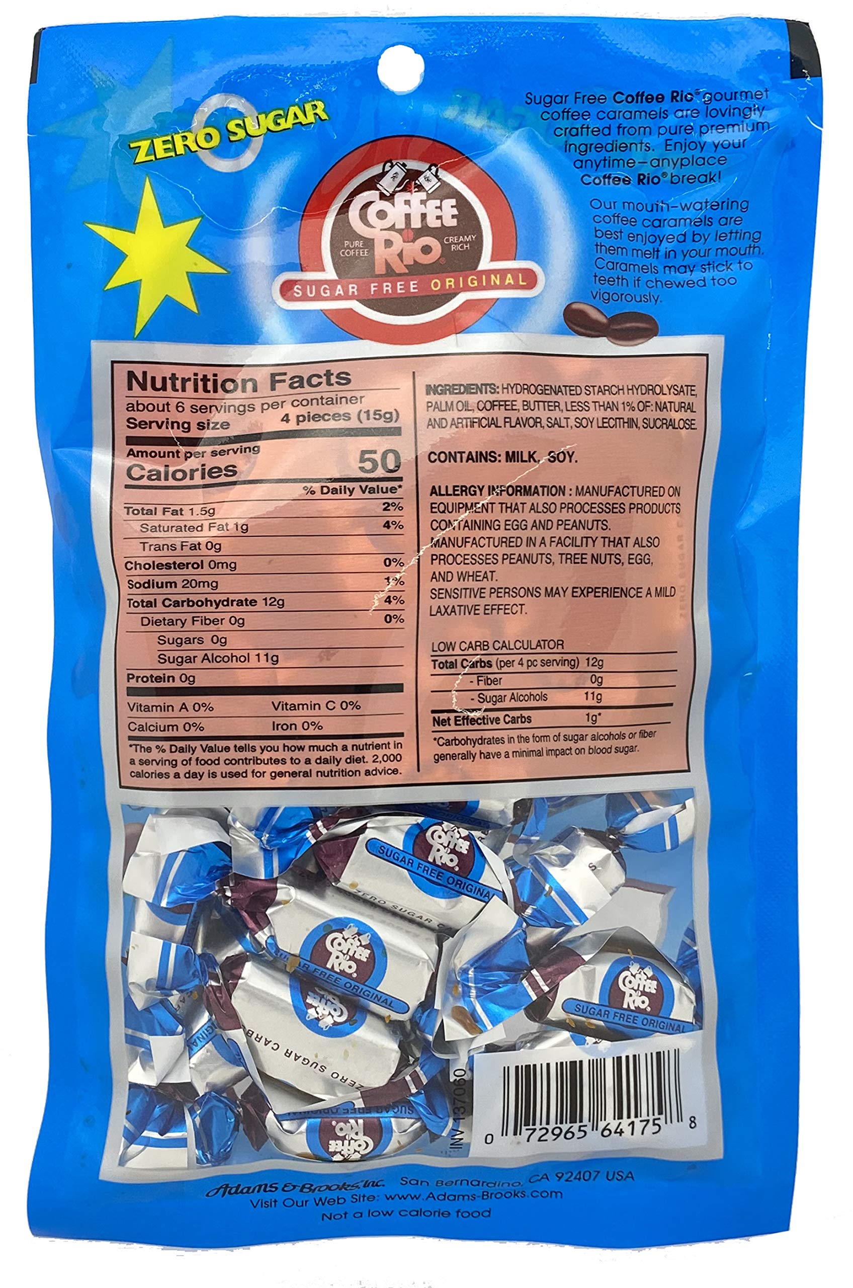 Adams & Brooks Sugar-Free Coffee Rio Coffee Candy Variety Pack Of 4 - Original And Caffe Latte, 3 Ounces - Zero Sugar Carbs