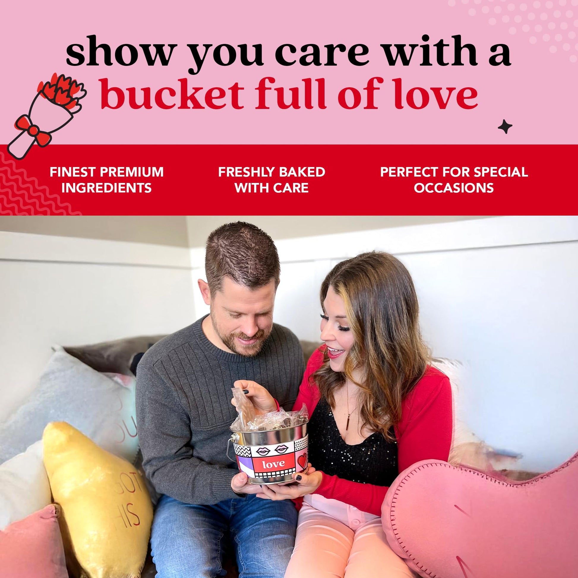 Savor The Delight Of Goodness With Our Assorted Cookies And Brownies, Carefully Crafted For A Delicious Treat Suitable For Everyone. | Love-Themed Presentation: Delight Your Loved Ones With A Visually Appealing Love-Themed Decorated Bucket, Adding A Touch Of Charm To Your Celebrations. | Freshly Baked Perfection: Enjoy The Mouthwatering Experience Of Freshly Baked Gourmet Cookies And Brownies, Made With Care And Precision For An Irresistible Taste. | Thoughtful Valentine'S Day Gift: Show Your Love With This 1.3 Lbs Bucket Sampler, A Perfect Gift To Express Your Affection | Assorted Gourmet Goodies: Indulge In A Variety Of Gluten-Free Flavors, From Cookies To Brownies, Providing A Diverse And Delectable Assortment For Your Special Occasion.