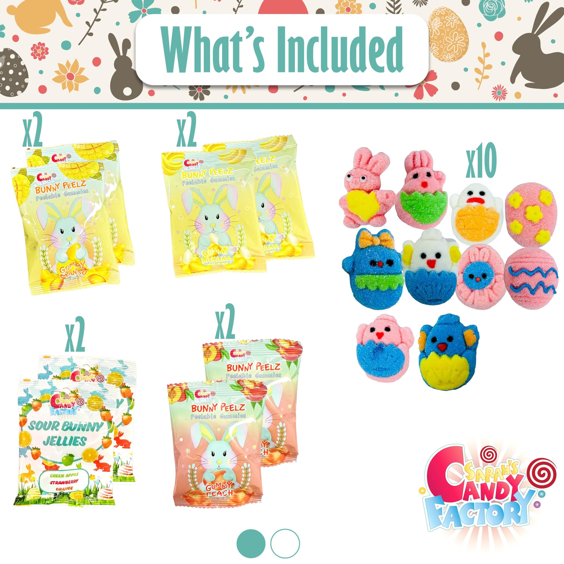 Q: What snacks are included in the Easter Blue Round Willow Basket?A: The Easter Blue Round Willow Basket includes a delightful assortment of treats such as peelable gummies, marshmallow gummies, cookies, candies, and other sweet snacks, making it a perfect choice for satisfying various cravings.