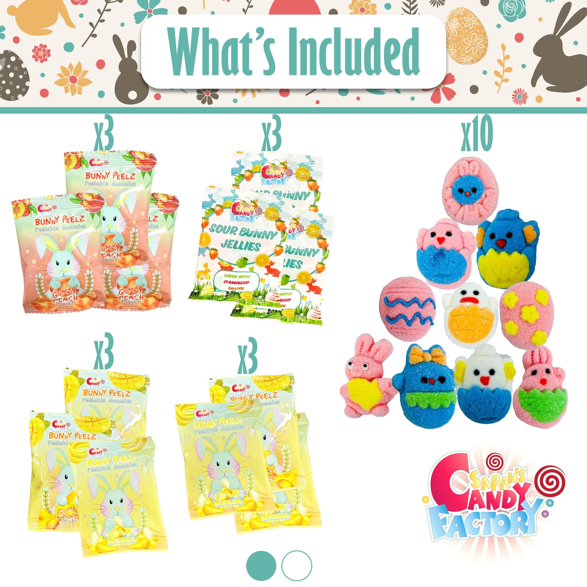 - Q: What types of snacks are included in the Easter Snack Yellow Box? A: The Easter Snack Yellow Box includes a delightful assortment of treats such as peelable gummies, marshmallow gummies, cookies, and various candies, ensuring a variety of sweet flavors to satisfy any craving.