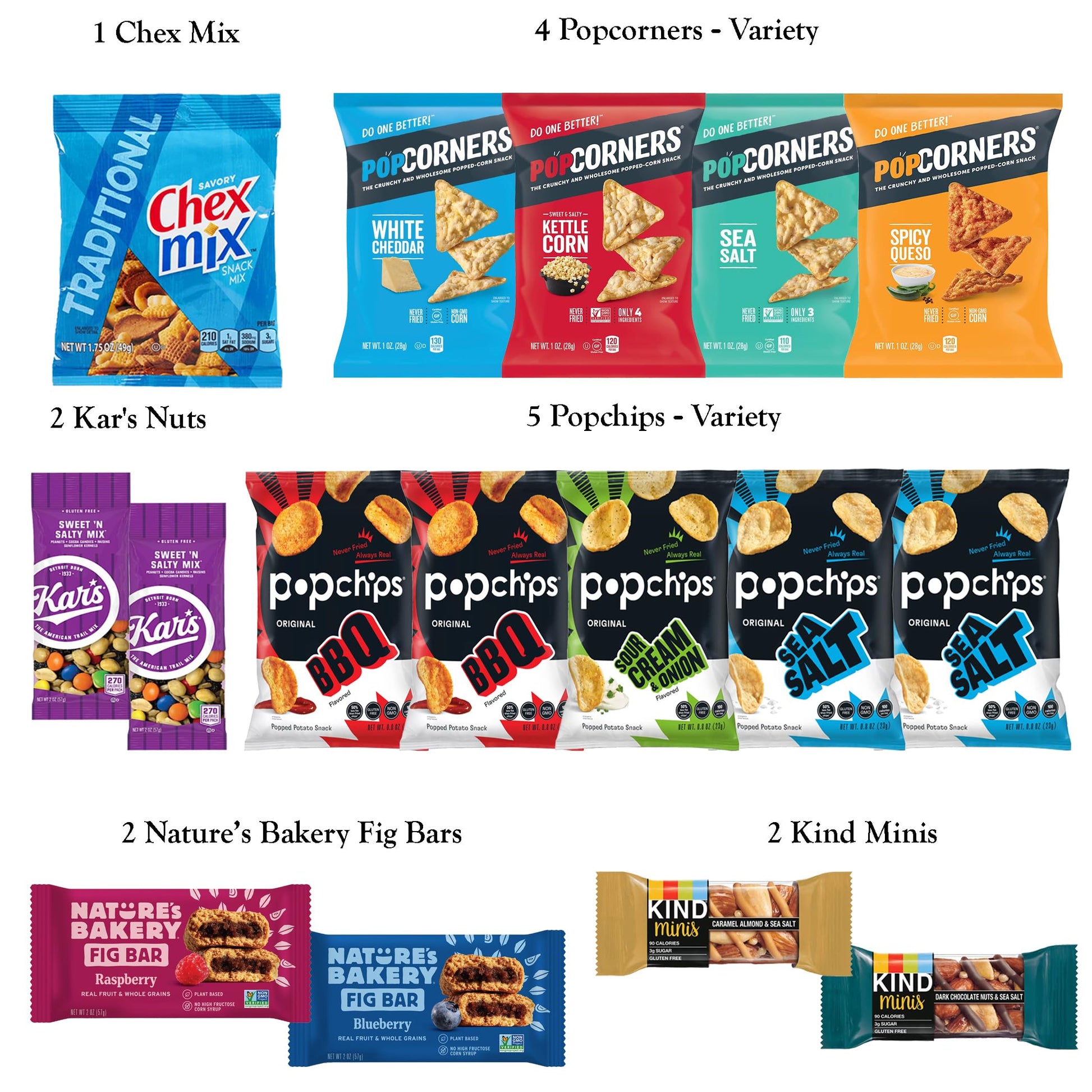 Q: What types of snacks are included in the Foxy Fane Holiday Gift Box?A: The Foxy Fane Holiday Gift Box contains a variety of healthy snacks and treats from trusted brands, offering a perfect mix of sweet, savory, crunchy, and chewy delights. With 90 individually wrapped items, there's something for everyone.