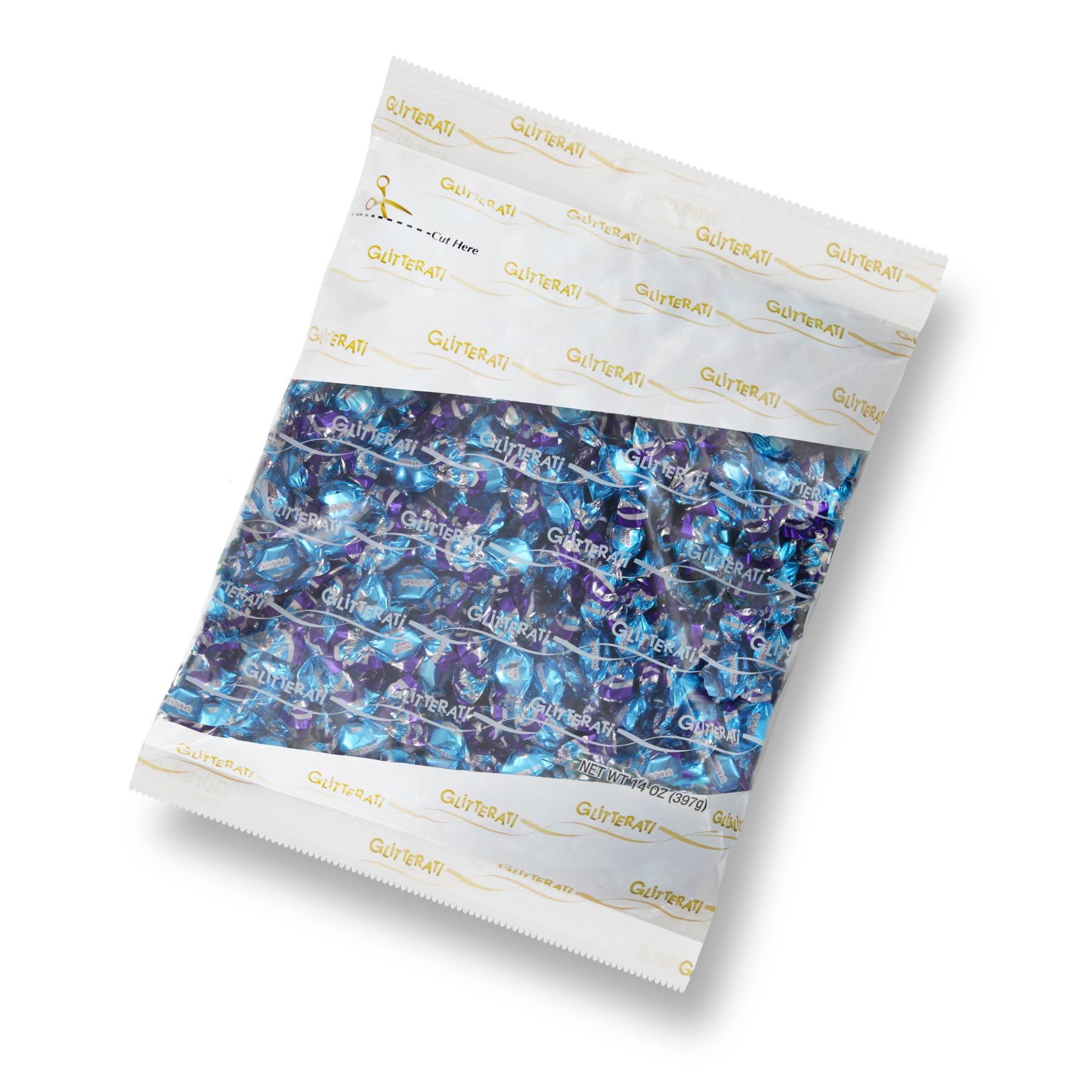 Q: What ingredients are used in GLITTERATI Deluxe Mint candies?A: GLITTERATI Deluxe Mint candies are made with high-quality ingredients including sugar (from beets), corn syrup, mint oils, and colors such as Yellow 5 and Blue 2. They are gluten-free and kosher certified.