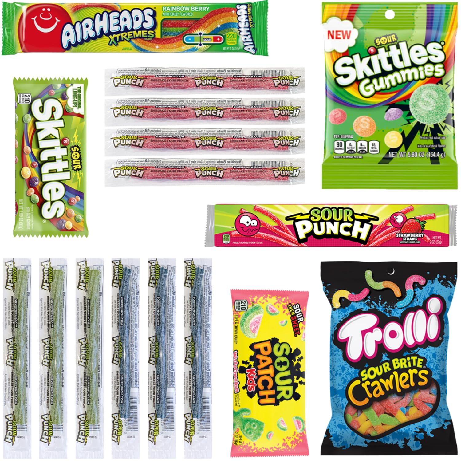 Q: What types of sour candies are included in the Hangry Kit Congratulations Sour Candy Kit?A: The Hangry Kit Congratulations Sour Candy Kit features a delightful 16-piece variety pack that includes a mix of your favorite sour candy classics, offering a range of flavors and textures to satisfy any sour candy lover.