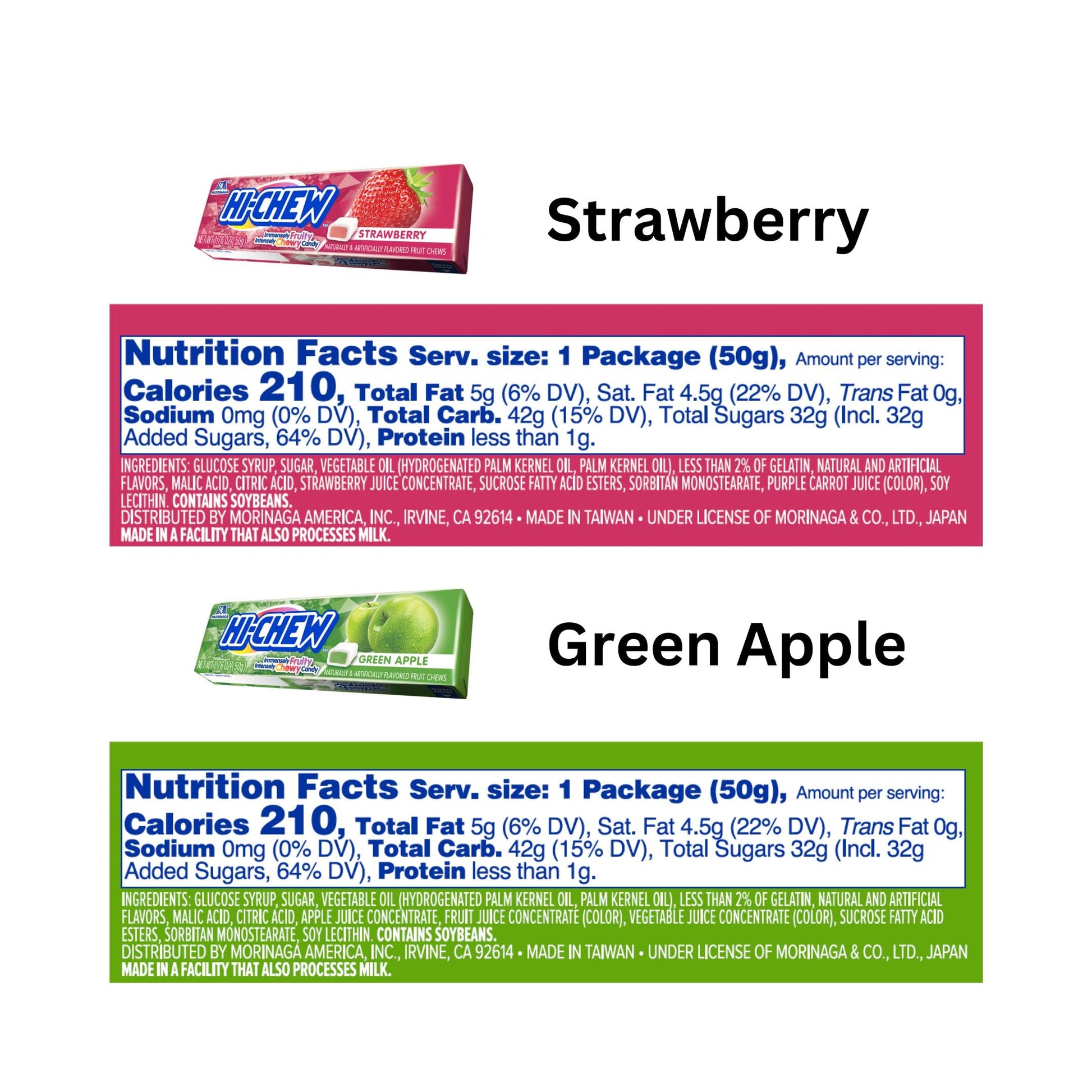 Q: Where are HI-CHEW candies manufactured?A: HI-CHEW candies are manufactured in North Carolina, Taiwan, and China, ensuring a blend of quality and authentic flavor that appeals to fans worldwide.
