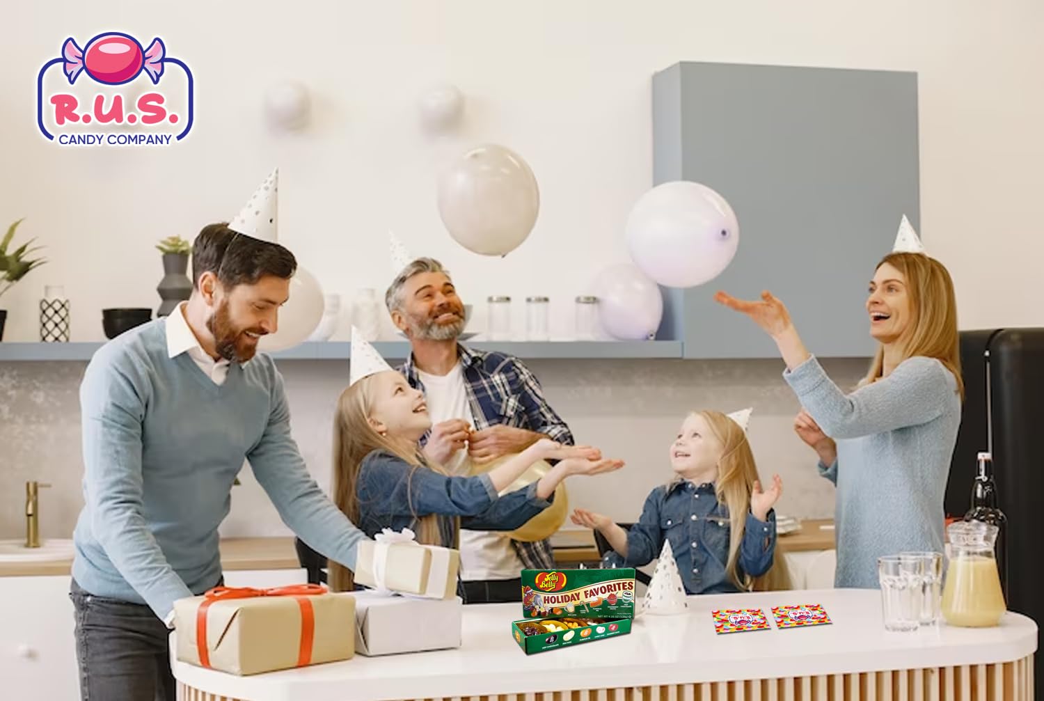 Q: Is this Jelly Belly gift box suitable for holiday parties?A: Yes, the Jelly Belly Holiday Favorites Gift Box is an excellent choice for holiday parties, offering a delightful candy experience along with fun activities through the included R.U.S. Candy Cards.