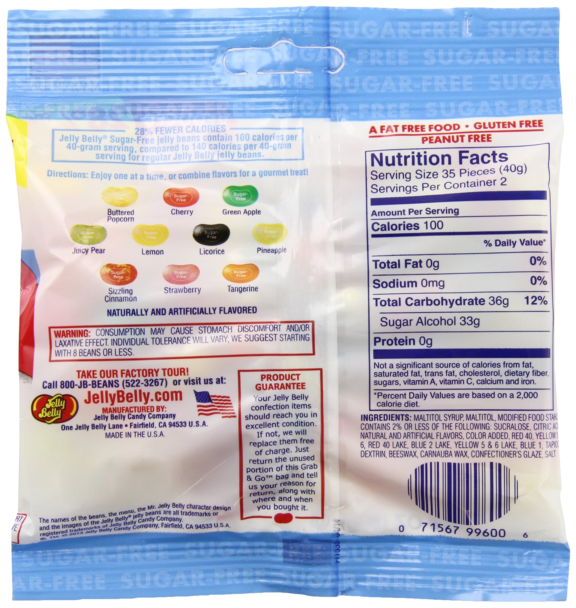 - Q: Are Jelly Belly Sugar-Free Jelly Beans suitable for people with dietary restrictions? A: Yes, Jelly Belly Sugar-Free Jelly Beans are gluten-free, peanut-free, dairy-free, and fat-free. They are also OU Kosher Certified, making them a great option for a variety of dietary needs.