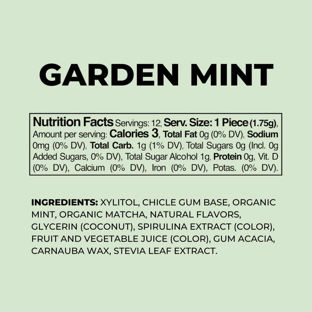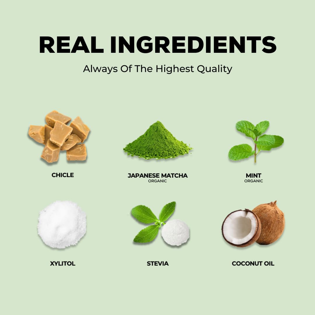 Q: What are the main ingredients in Refresh Gum?A: Refresh Gum is made with a natural chicle gum base, sweetened with Xylitol and Stevia. It contains organic powders for flavor, including mint, raspberry, and peach, ensuring a natural taste without artificial additives.